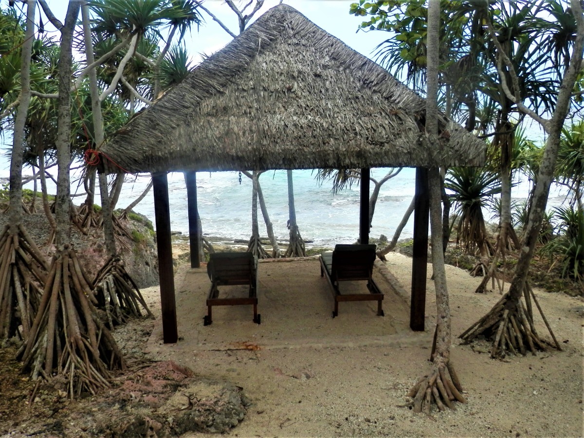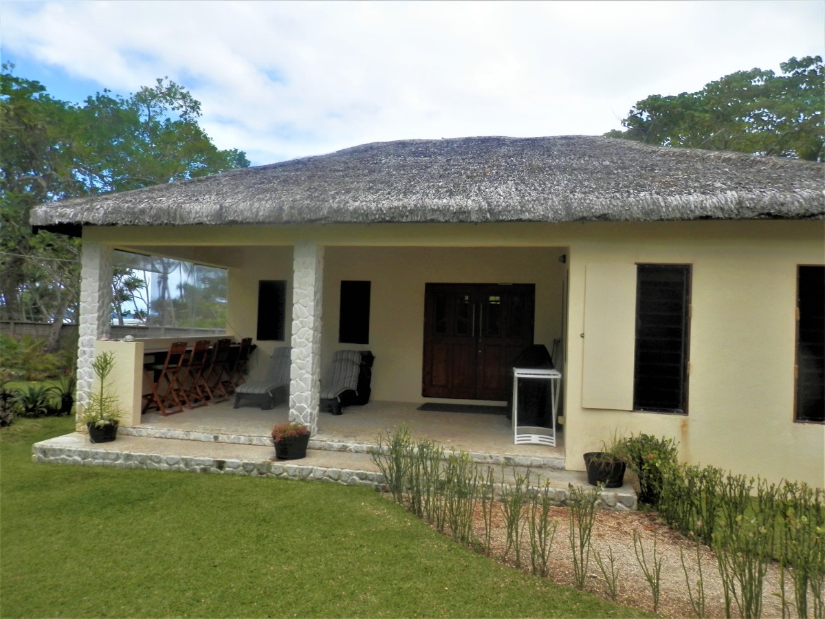 Rezervovali jsme si ubytování v bungalowu u novozélandského páru. Karen a Rick si na Efate pořídili domek a přilehlý bungalow pronajímají turistům. Přiletěli jsme s papuánskou leteckou společností Air Niugini, jejíž letadlo havarovalo v tropické bouři při přistání na jednom z mikronéských ostrovů dva dny před naším příletem ze Šalamounových ostrovů na Vanuatu. Karen nás přes Whatsapp uklidňovala, že na Efate bude při příletu krásné počasí. Později se ale přiznala, že když psala tuto zprávu, lilo jako z konve. Počasí v tropech se však rychle mění, takže jsme přistáli v klidu. Závěrečný úsek jízdy autem z letiště do bungalowu vede cestou vysypanou sněhobílým pískem z korálu. Přátelsky nás vítá třínohý pes našich hostitelů. Hned první večer jsme se vyděsili, když se s námi po dobu několika vteřin začala houpat podlaha. Za chvíli se ve tmě objevilo světlo baterky a Karen se nás s úsměvem snažila uklidnit, že je to na Vanuatu běžný jev – zemětřesení. Podle Richterovy stupnice mělo sílu 5,1 stupně. Celou noc jsme nespali strachem, že přijde tsunami, přestože nás Karen ujistila, že nehrozí žádné nebezpečí. Bungalow je umístěn na břehu moře a každou noc během přílivu slyšíme burácející Tichý oceán. Probouzíme se do již klidného rána. Je totiž odliv a užíváme si nádherný výhled na nekonečnou vodní hladinu. U břehu si naši hostitelé vybudovali přírodní bazének s mořskou vodou, říkají mu „rock pool“.