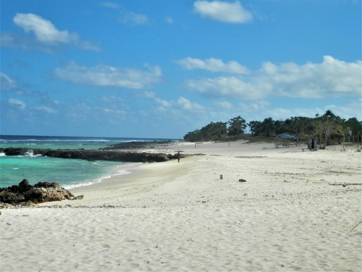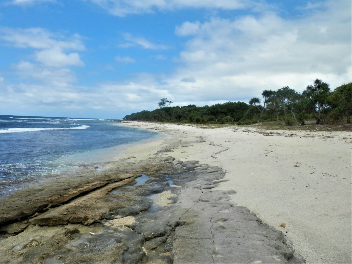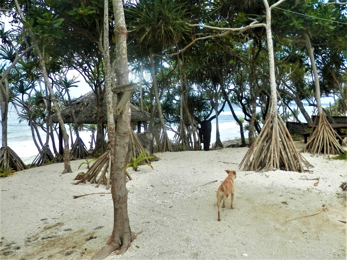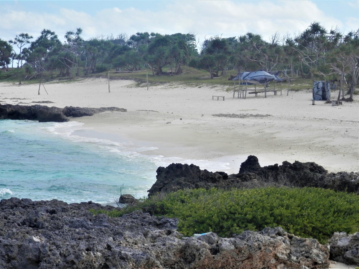 Po snídani se vydáváme na objetí ostrova. Máme to nejlevnější auto. Hned za druhou zatáčkou se zvedá strmý kopec. V jeho polovině došly autíčku síly, zakuckalo se a konec. Nezbylo než se otočit, vrátit se pod kopec a hodně se rozjet. Napodruhé se to povedlo! Jediná silnice vede kolem ostrova. Míjíme vesničky. V jedné z nich nás staví svátečně oblečený Vanuaťan. Svědkové Jehovovi jsou všude. Bereme si jejich letáky psané v jazyce bislama. O kousek dále je krásný výhled na vedlejší ostrůvek. Jsou zde dva domorodci. S jedním se bavíme anglicky a s druhým francouzsky. Spolu se domlouvají v bislama, protože každý z nich je z jiného ostrova. U každé vesnice jsou nádherné pláže. Na některých vybírají vesničané vstupné. Většina z nich září bílým korálovým pískem, jsou zde ale i černé pláže s pískem sopečného původu. Vnitrozemí je nepřístupné, občas se ale dá zajet po neasfaltované cestě kousek od pobřeží. Na jednom místě je odbočka do luxusního rezortu, jinde do tradiční vesnice s hroby předků přímo před domy. Na jedné z bělostných pláží manžel ztratil klíč od auta. Přicházejí dvě sympatické vanuatské dívky a pomáhají nám ho hledat. Bílý písek vypadá jako sníh, jsou v něm vidět naše stopy, takže nebylo obtížné klíč najít.
