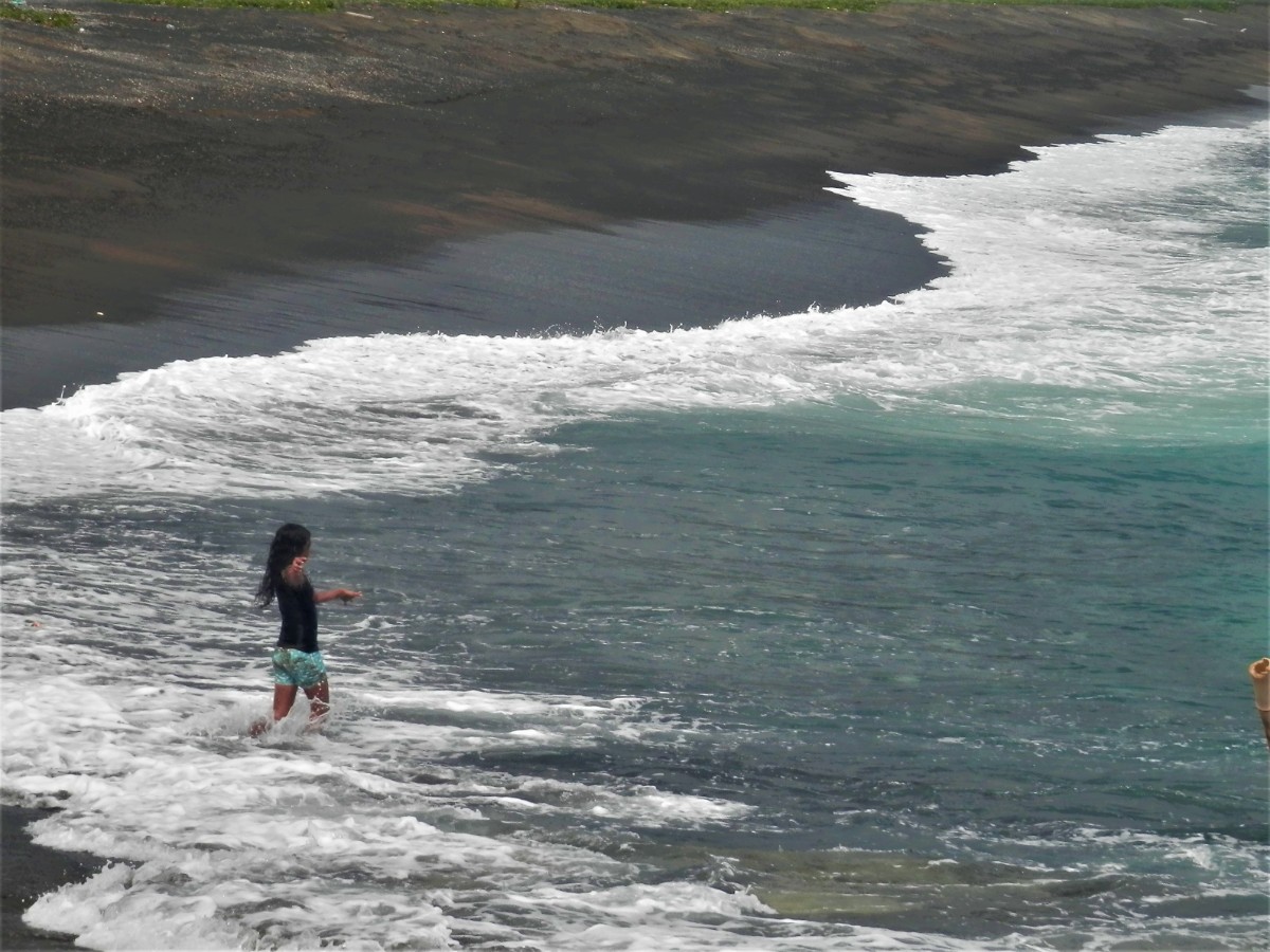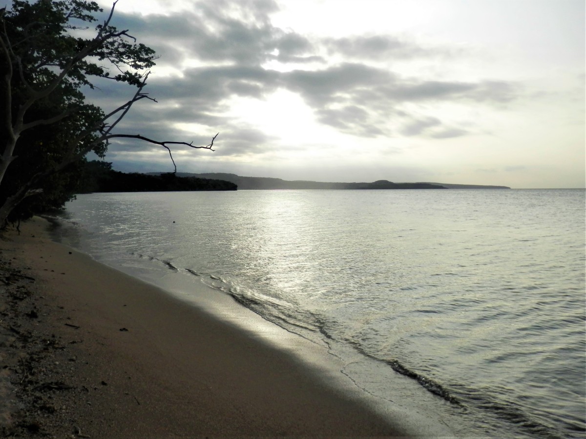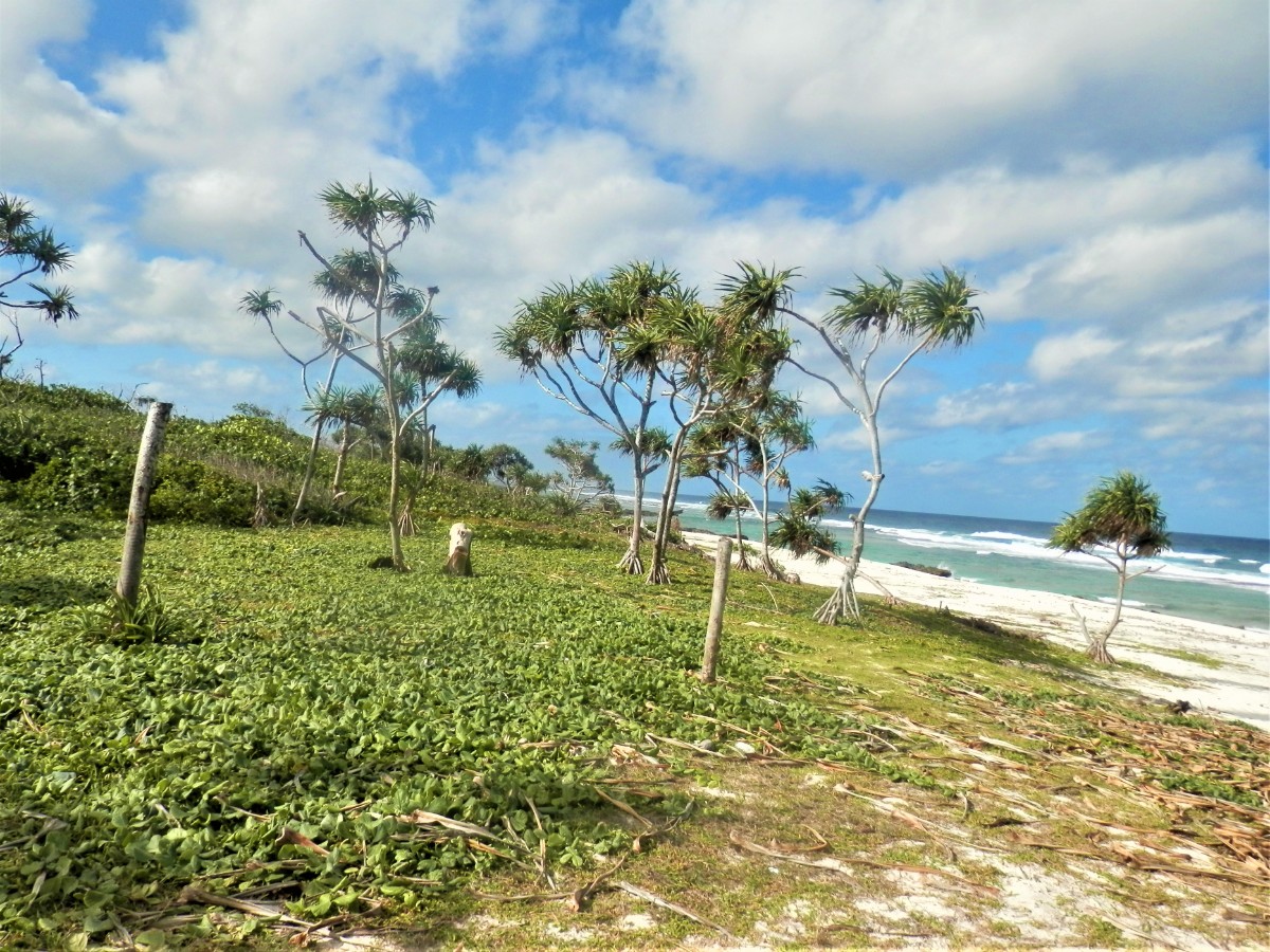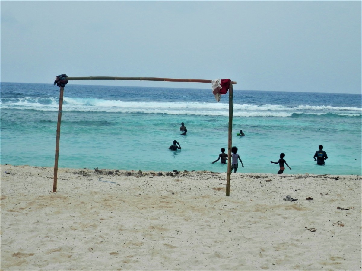 Po snídani se vydáváme na objetí ostrova. Máme to nejlevnější auto. Hned za druhou zatáčkou se zvedá strmý kopec. V jeho polovině došly autíčku síly, zakuckalo se a konec. Nezbylo než se otočit, vrátit se pod kopec a hodně se rozjet. Napodruhé se to povedlo! Jediná silnice vede kolem ostrova. Míjíme vesničky. V jedné z nich nás staví svátečně oblečený Vanuaťan. Svědkové Jehovovi jsou všude. Bereme si jejich letáky psané v jazyce bislama. O kousek dále je krásný výhled na vedlejší ostrůvek. Jsou zde dva domorodci. S jedním se bavíme anglicky a s druhým francouzsky. Spolu se domlouvají v bislama, protože každý z nich je z jiného ostrova. U každé vesnice jsou nádherné pláže. Na některých vybírají vesničané vstupné. Většina z nich září bílým korálovým pískem, jsou zde ale i černé pláže s pískem sopečného původu. Vnitrozemí je nepřístupné, občas se ale dá zajet po neasfaltované cestě kousek od pobřeží. Na jednom místě je odbočka do luxusního rezortu, jinde do tradiční vesnice s hroby předků přímo před domy. Na jedné z bělostných pláží manžel ztratil klíč od auta. Přicházejí dvě sympatické vanuatské dívky a pomáhají nám ho hledat. Bílý písek vypadá jako sníh, jsou v něm vidět naše stopy, takže nebylo obtížné klíč najít.