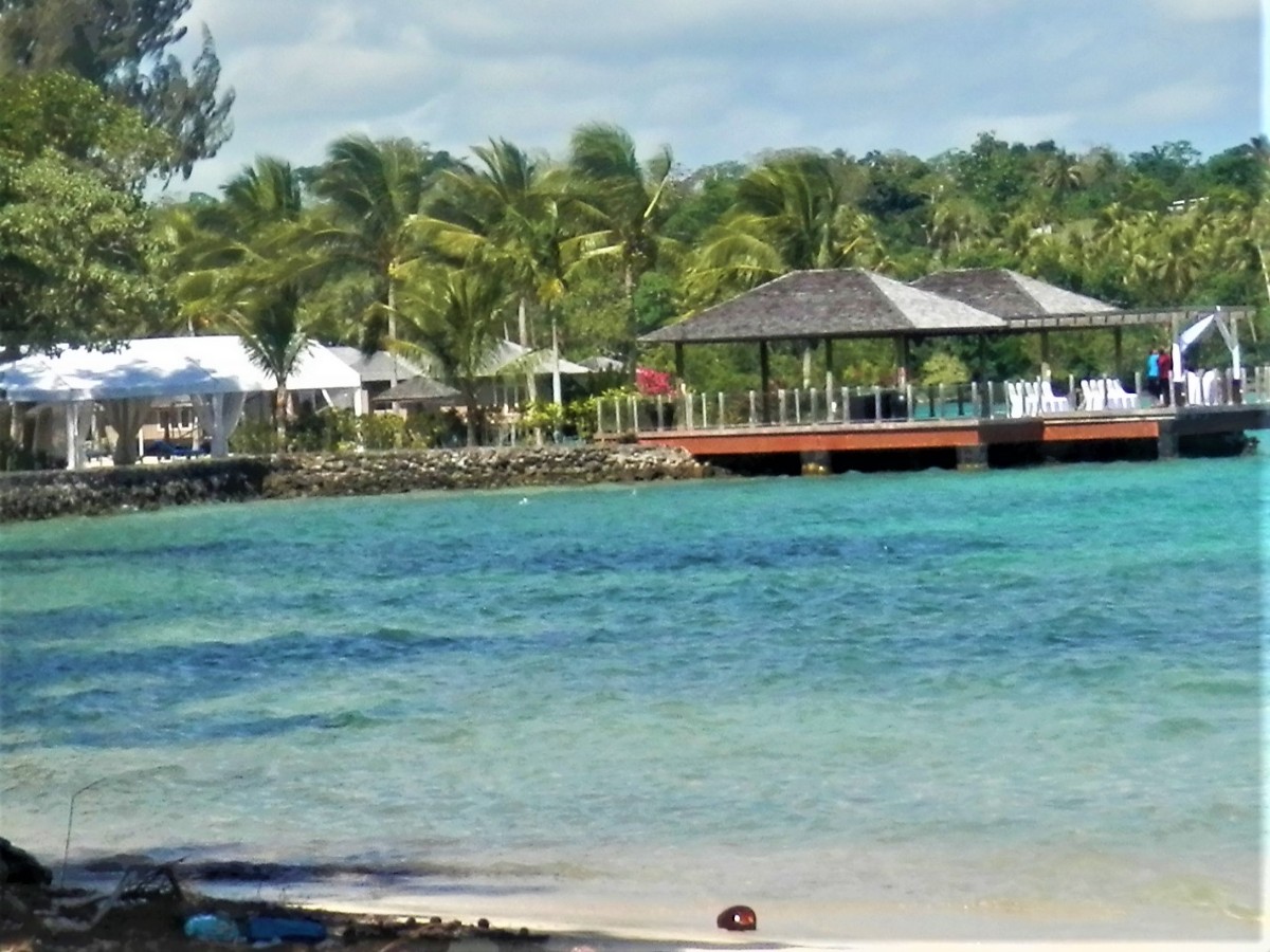 Během našeho pobytu objedeme ostrov Efate ještě několikrát. V hlavním městě nahlédneme na místní trh s ovocem a zeleninou a přes záliv s tyrkysově zbarvenou vodou pozorujeme drahé luxusní rezorty. Lidé v nich se o životě na ostrově moc nedoví. Se zájmem a trochou hrůzy čteme pokyny pro evakuaci v případě tsunami. Tak přece k němu může dojít! Udělali jsme si i pěší výlet k vodopádu. Čínský podnikatel na vstupu do rezervace postavil dřevěnou budku a vybírá peníze. Kráčíme po úzké cestě lemované tropickou vegetací. Když jsme se podle šipek blížili k vodopádu, narazili jsme na říčku. Bez můstku. Nechtělo se nám brodit a vrátili jsme se. Číňan nám vrátil vstupné.