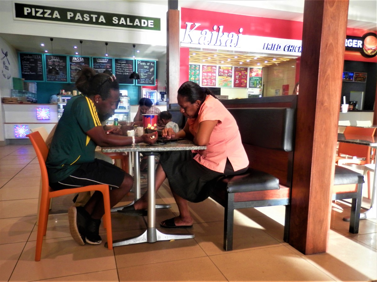 Restaurace jsou na Vanuatu poměrně drahé, takže jsme se většinou stravovali v malém obchodním centru v Port Vila. Byla tam sympatická pizzerie s francouzským majitelem, se kterým jsme se brzy spřátelili.