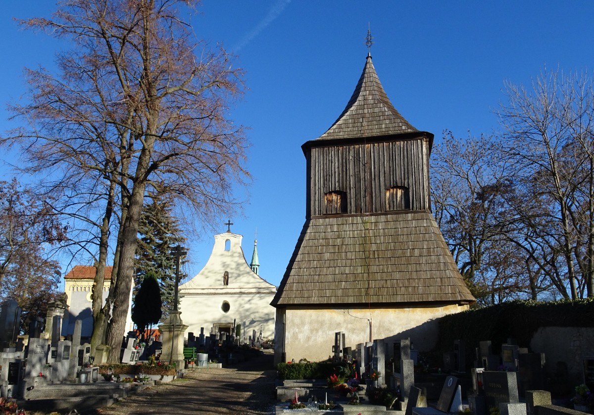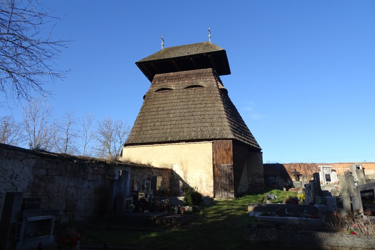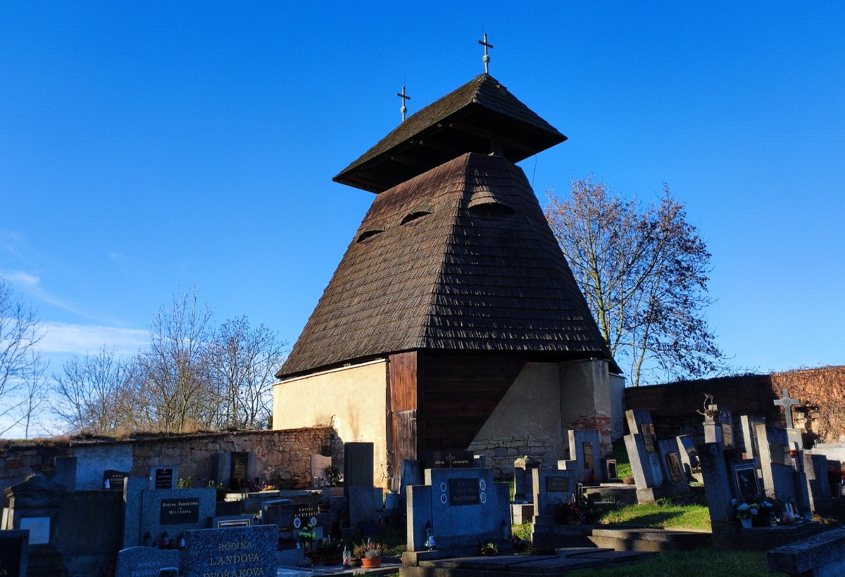 Zvonice pravděpodobně ze 17. století se nachází na návrší nad vsí v rohu hřbitova. Původně v ní byly tři zvony z let 1386, 1679 a 1734. Druhý zvon nese nejstarší český nápis na světě:
