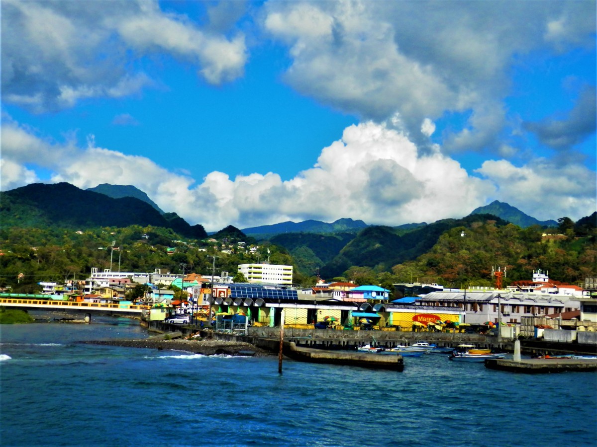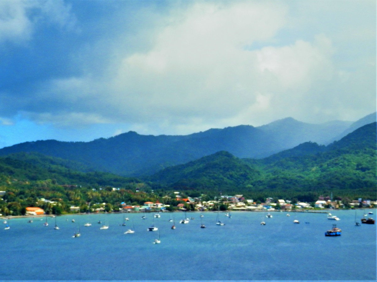 Do většiny vzdálených zemí se cestuje letadlem. Když jsme dobře posazení, vidíme ve dne okénkem letadla rychle ubíhající krajinu nové země a v noci světélka spících měst, ale není čas na vstřebání těchto prvních dojmů, protože nás čeká úprk k pasové kontrole. Mezi ostrovy v Karibském moři jsme ale v roce 2015 cestovali lodí, takže jsme měli možnost se pomalu s každým z nich z dálky seznamovat. Nejprve se objevil na obzoru, potom se pozvolna zvětšoval. V případě Dominiky byly vidět poměrně vysoké hory topící se v tropické zeleni. Pak se v dálce objevil přístav a město. Bylo možné sledovat všechny detaily, včetně vlajky nezávislé Dominiky. Co nás tam čeká?