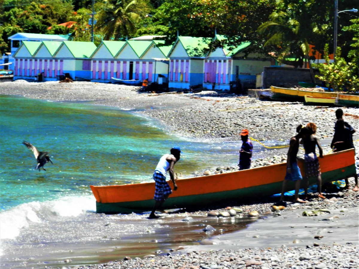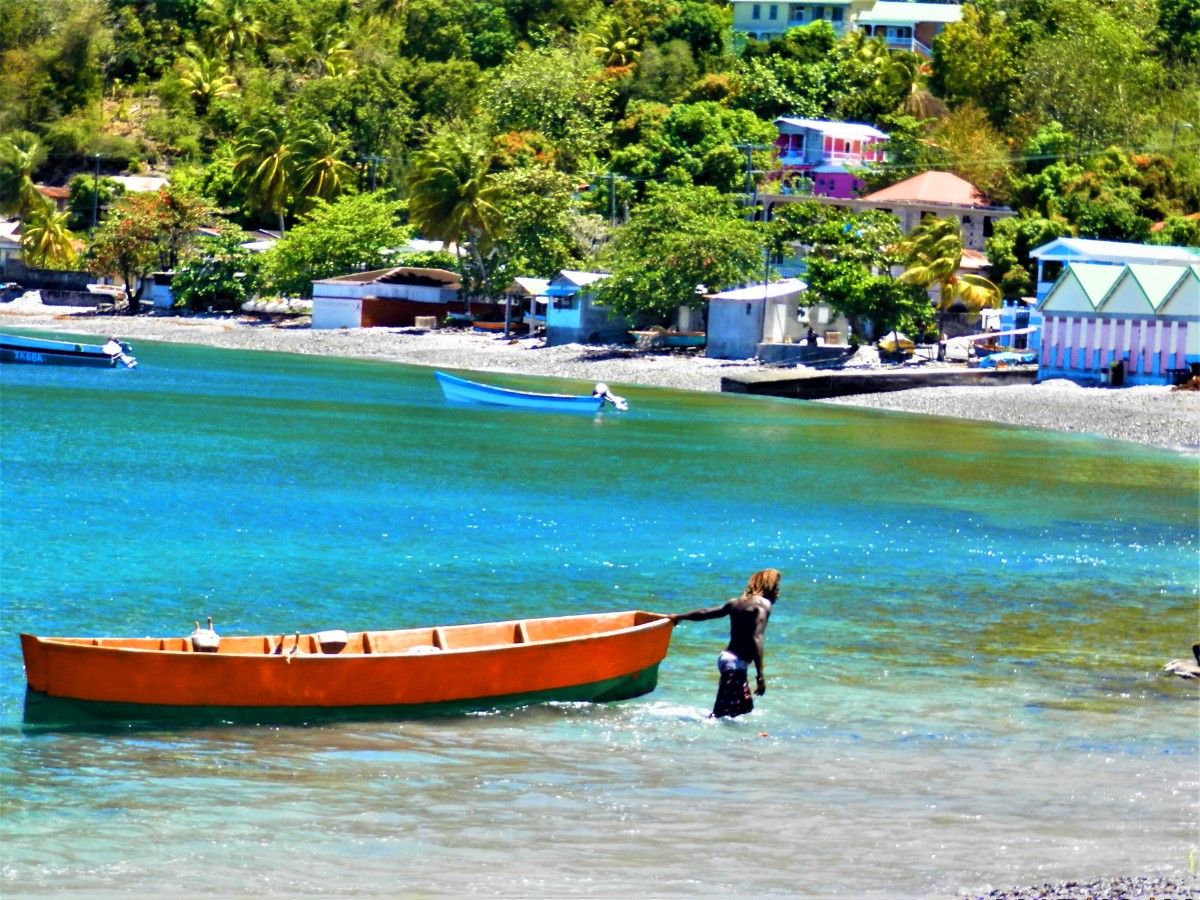 Z pevnosti jedeme po západním pobřeží ostrova na jeho jižní cíp s názvem Scotts Head. Vzdálenost necelých 60 kilometrů jedeme hodinu a půl, protože tato část ostrova je poměrně hustě obydlena. Scotts Head je pahorek spojený s hlavním ostrovem úzkou šíjí. Je zde nejsušší klima na Dominice, ale ani zde zeleň nechybí. V zátoce pozorujeme místní rybáře, kteří za doprovodu hlasité karibské hudby vytahují svoje loďky z moře. Blankytná obloha a okolní zeleň vytvářejí vhodnou kulisu pro podmanivé zvuky reggae, za které by se nemusel stydět ani Bob Marley. Trochu jsme se zklamali v místní pizzerii. Pokus o zpestření jídelníčku se nepovedl. Na pizzu je lepší jet do Neapole.