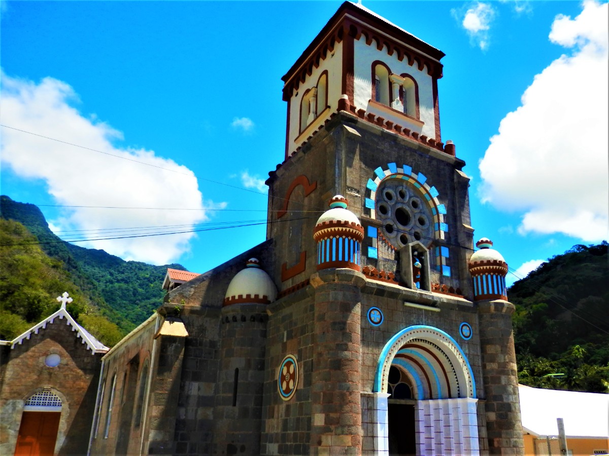 Další den raději jedeme na oběd do hlavního města Roseau. Bylo postaveno na místě původní karibské vesnice Sairi. Francouzi ho pojmenovali podle rákosí, které rostlo podél břehů místní řeky („roseau“ znamená francouzsky rákos). Manžela čekala operace kyčle, obtížně se pohyboval, takže jsem se na průzkum restaurací vydávala sama. Pro změnu jsem vybrala čínskou restauraci, kde jsme se tentokrát dobře najedli. Roseau je malé město, které má přibližně 15 000 obyvatel, ale chaos na ulicích není o nic menší než ve velkoměstech. Hodně budov je dřevěných ve stylu tropické koloniální architektury. Katedrála je výstavná, místní černé obyvatelstvo je nábožensky založené.