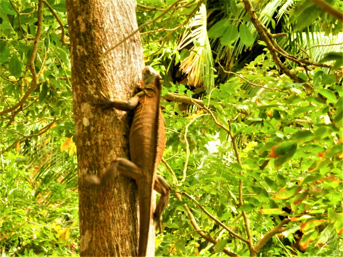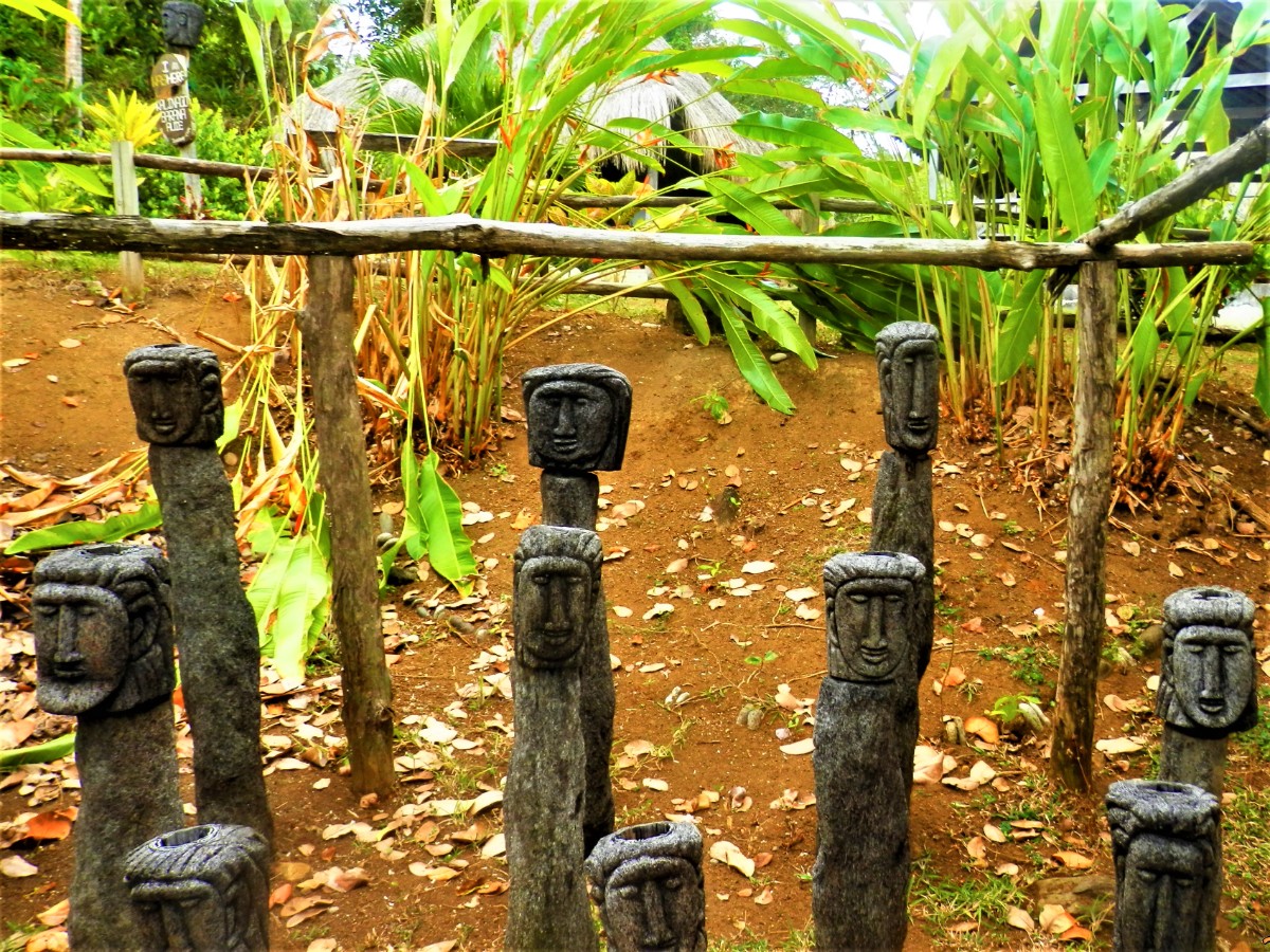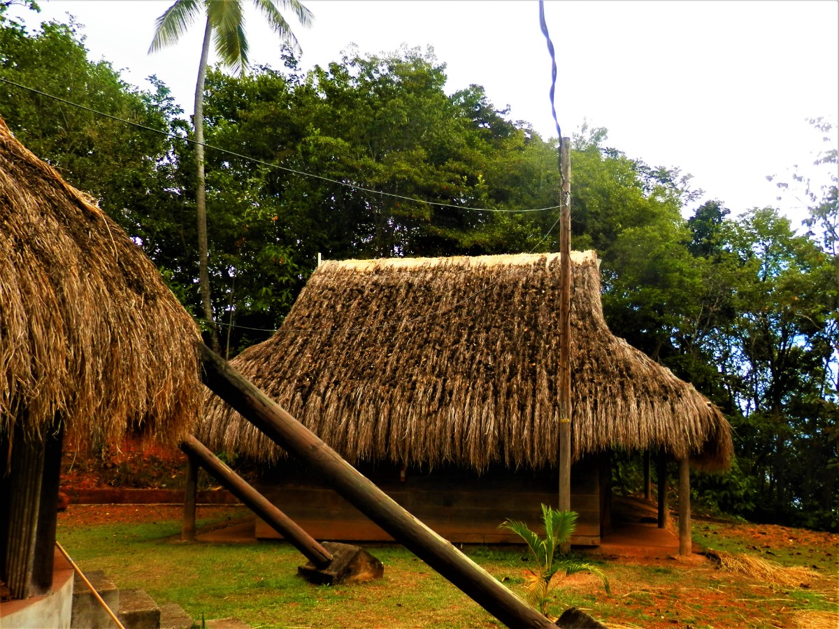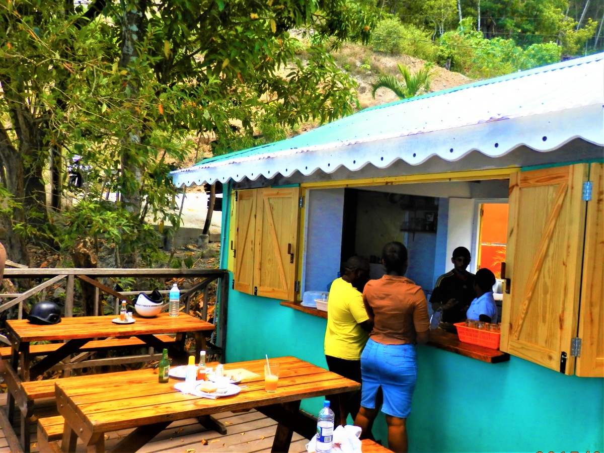 Asi nejlépe jsme se najedli v restauraci nedaleko vesnice indiánských Karibů s názvem Kalinago Barane Aute. Jedna její část je zároveň skanzenem, kde jsme se mohli za poplatek s místní průvodkyní seznámit s životem původních obyvatel Karibiku. Karibové se dělí na kontinentální (Kalinové) a ostrovní (Kalinagové). Kalinové žijí převážně ve vesnicích na řekách a pobřeží Venezuely, Guayany, Surinamu, Francouzské Guayany a Brazílie. Kalinagové jsou původním obyvatelstvem Malých Antil v Karibiku. V raném koloniálním období měli Kalinagové pověst válečníků, kteří přepadali sousední ostrovy. Podle vyprávění španělských dobyvatelů byli Kalinagové kanibalové, kteří pravidelně jedli pečené lidské maso. V 17. století pravidelně napadali anglické a francouzské plantáže na všech ostrovech v Karibském moři. Využívali rozporů mezi koloniálními mocnostmi a dlouho se jim dařilo udržet si nezávislost. V roce 1660 podepsaly Francie a Anglie s ostrovními Kariby smlouvu, která stanovila, že Kalinagové vyklidí všechny Malé Antily s výjimkou Dominiky a Svatého Vincenta, které byly uznány jako jejich rezervace. Angličané však uzavřenou smlouvu nedodržovali a Karibové se ocitli na pokraji vyhubení. Pouze Kalinagové z Dominiky si po mnoho let udržovali nezávislost díky tomu, že využívali členitého a hornatého terénu svého ostrova. Určitou nezávislost mají dodnes, jedná se o území o rozloze 15 kilometrů čtverečních, dříve známé jako Karibské území, které jim v roce 1903 udělila britská vláda. Kalinagové si i nadále volí svého náčelníka. Právě tam se nachází i skanzen, který jsme navštívili. Byli jsme trochu zklamáni, protože jsme se domnívali, že uvidíme karibské „Indiány“, zatímco lidé ve vesnici byli téměř k nerozeznání od černých kreolů. Pouze průvodkyně byla poněkud světlejší. Tvrdila dokonce, že staří lidé ve vesnici ještě mluví jazykem Kalinagů, ovšem podle oficiální verze tento jazyk zanikl již před sto lety. Pravděpodobně měla na mysli místní kreolštinu, která obsahuje hodně slov původních Karibů. Na Dominice žije posledních 3 000 Kalinagů, ale pouze sedmdesát z nich se považuje za čisté Kariby, nesmíchané s většinovou populací Dominiky tvořenou potomky černých otroků.