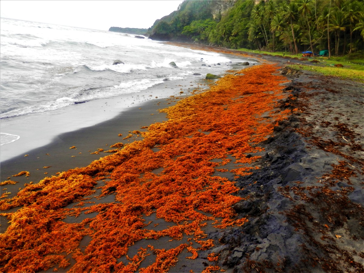 Na Dominice nejsou pláže vhodné ke koupání, ovšem našli jsme jednu pláž s černým sopečným pískem, na které byly vyplaveny jakési mořské chaluhy, které vytvářely barvitou podívanou. Náš pobyt na tomto kouzelném ostrově tam končil a čekala nás plavba na Martinik. O tom možná někdy příště.