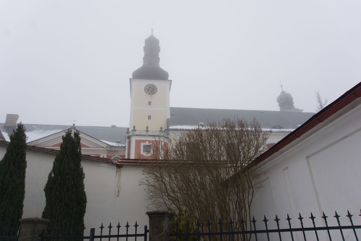 V klášteře panovala pořádná zima, venku mlha a sychravo. S nadšením jsme přivítali možnost ohřát se a pochutnat si na výborné kávě v klášterní kavárně Café Dientzenhofer.