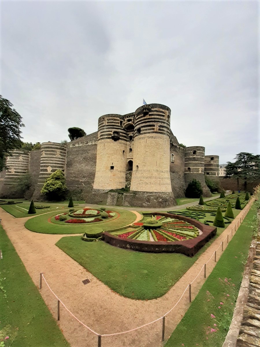 Než ztratíte trpělivost a odnechce se vám všech možných zámků, pozvu vás ještě na Hrad, ano s velkým H. Leží sice na jiné řece, ale je odtud, co by kamenem dohodil. Město Angers (anžér) a jeho hrad, vlastně pevnost o 17 mohutných, 30 metrů vysokých věžích. Pyšně se vypínají nad městem a uvnitř ukrývají, světe div se, renesanční zámek!  A zde, čtěte pozorně, přijal "dobrý král René", vládce nad touto oblastí, roku 1465 mírové poselstvo Jiřího z Poděbrad vedené Lvem z Rožmitálu.