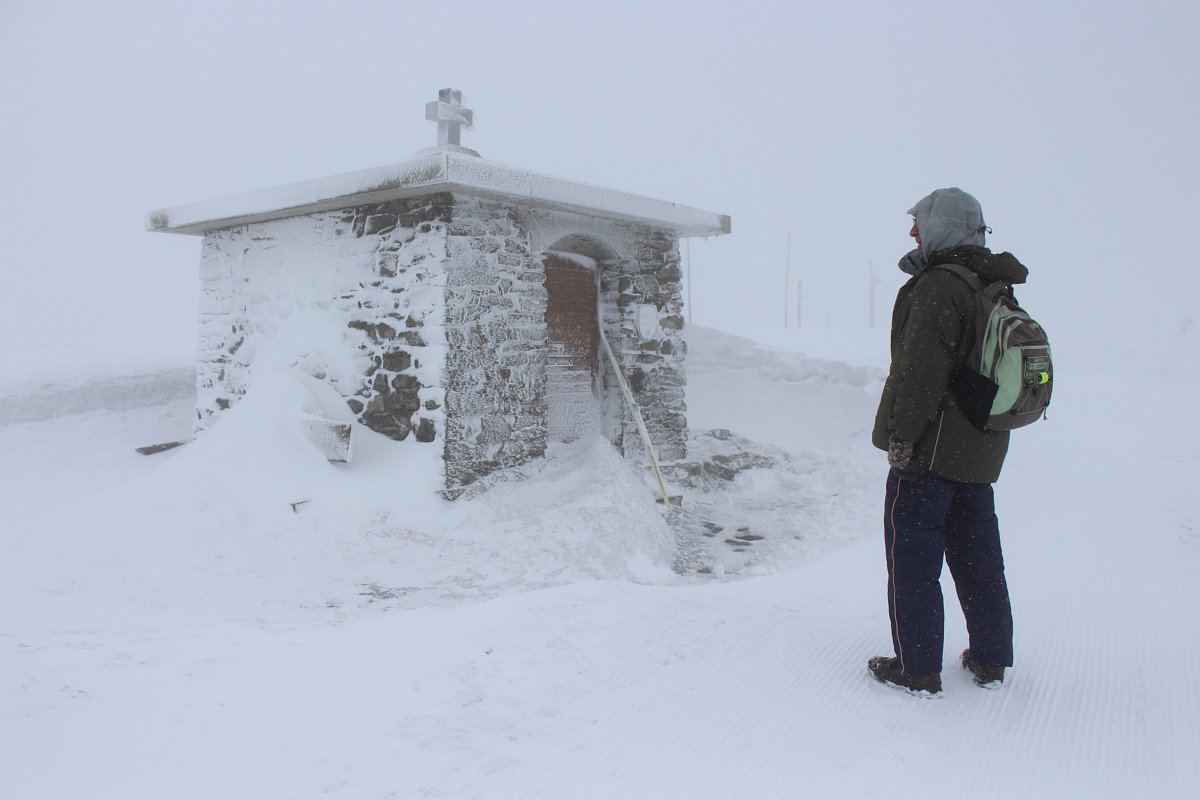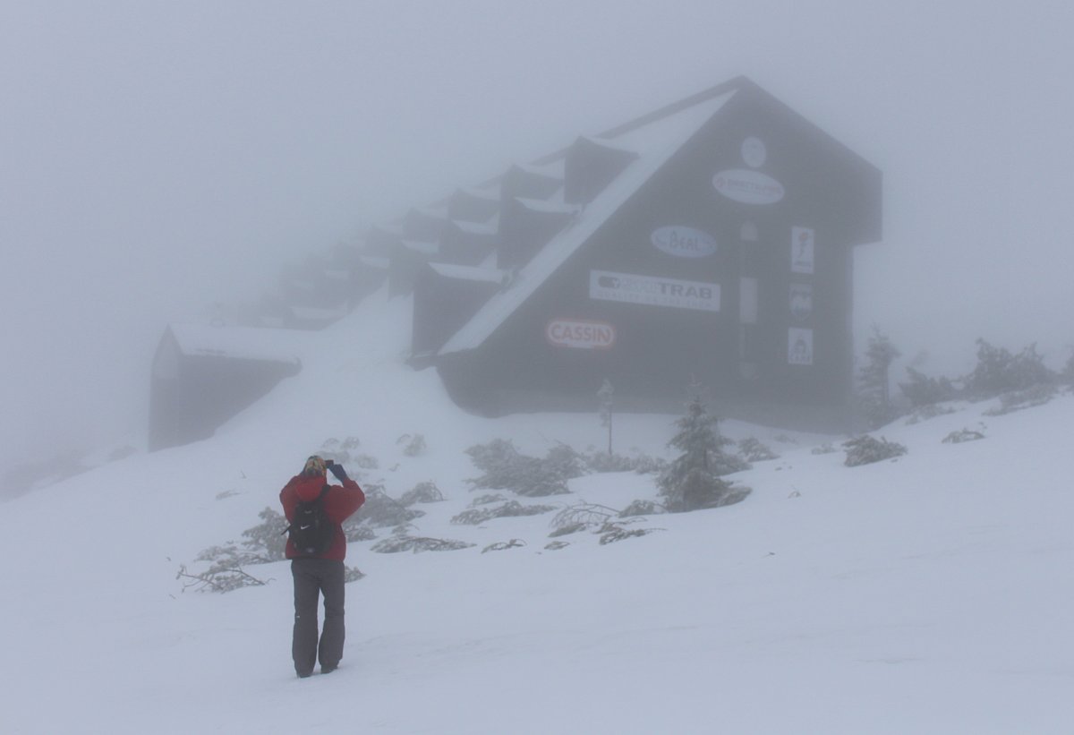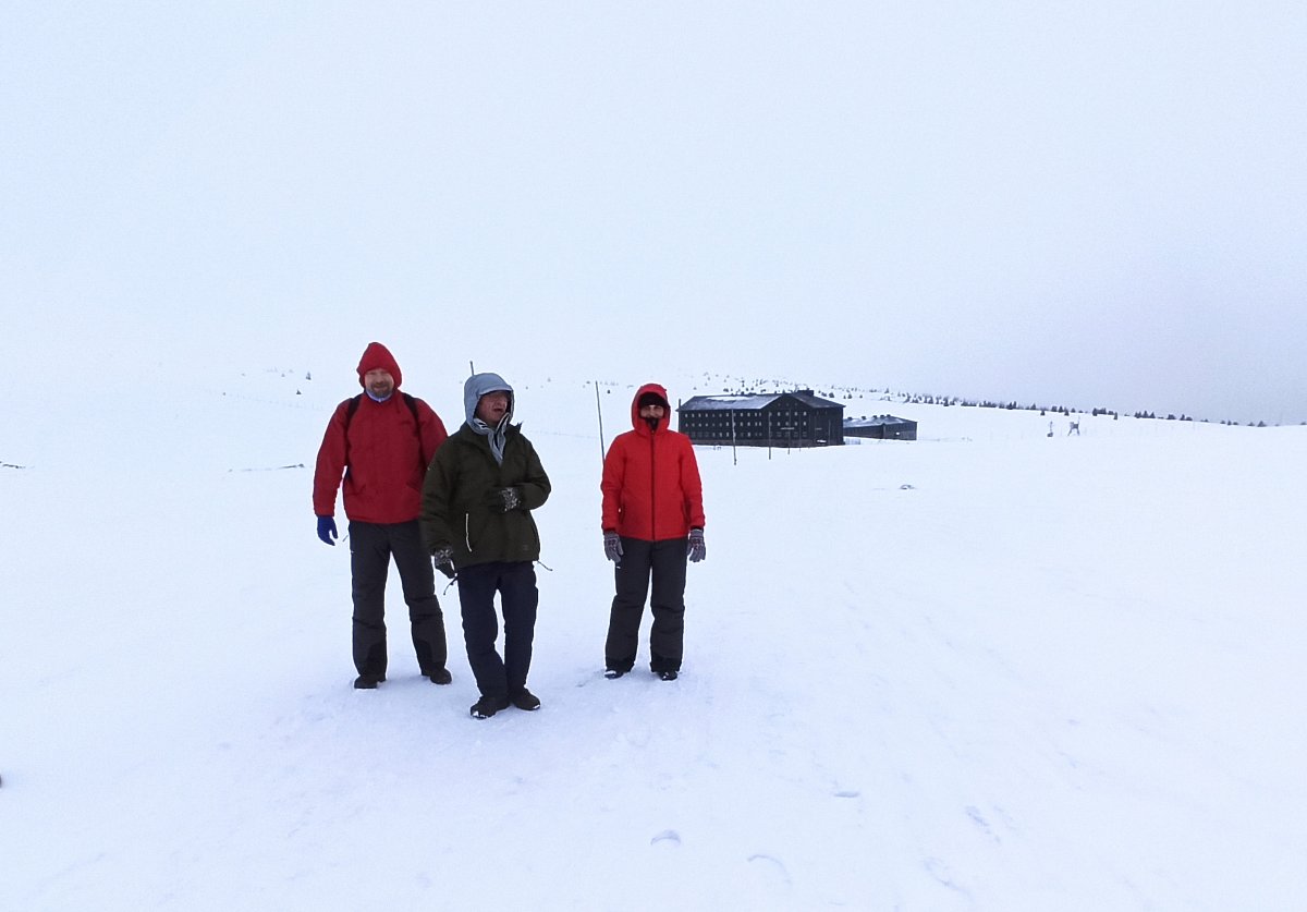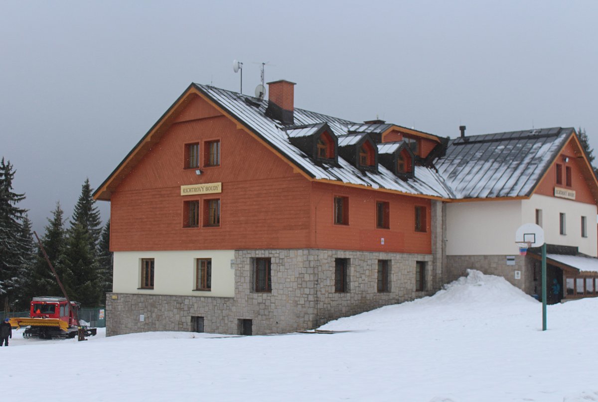 Když jsme v bílé mlze dorazili k cíli, k našemu překvapení se nebe rozestoupilo a my jsme uviděli vrcholek Sněžky. Hned po ubytování na pokojích jsme se vydali dobýt její vrchol. Protože se pomalu blížil večer a my dva senioři jsme se smířili s realitou, že už nestačíme mládí, dovolili jsme dceři a zeťovi, aby se na dobrodružnou cestu vydali sami. Kdyby bylo víc času, tak by jsme ji zdolali taky. Ušli jsme jen 2,5 km k chatě Dom šlaski, která leží na polské straně Krkonoš ve výšce 1400 m hned vedle Obřího dolu. Když jsme se na chatě trošku ohřáli a dali razítko do turistického deníčku, obrátili jsme se zpět k dočasnému domovu. Dveře od pokoje jsme otevřeli vyťukáním kódu, zahřáli jsme se horkou sprchou a pod dekou jsme netrpělivě čekali na naše dva zbylé turisty. Za chvíli přišla SMS, že v pořádku sestoupili do sedla, a nám se docela ulevilo. Na zpáteční cestě ze Sněžky prý potkali jednoho osamělého turistu, a že vypadal dost zkušeně. Za další půlhodinku už klepali na naše dveře. My jsme měli pokoj v první poschodí, oni ve druhém. Asi se tam drží hesla: Co nejdál od tchyně.