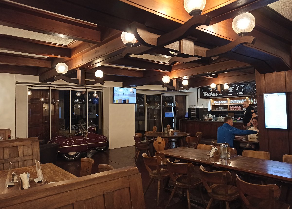 Všichni jsme se sešli u večeře ve velké restauraci, kde to docela žilo. Obsluhovali nás dva příjemní starší pánové, možná vysloužilí členové horské služby. Porce byly pořádné a pivo Paroháč, které se vaří v domácím pivovaru, nám moc chutnalo.