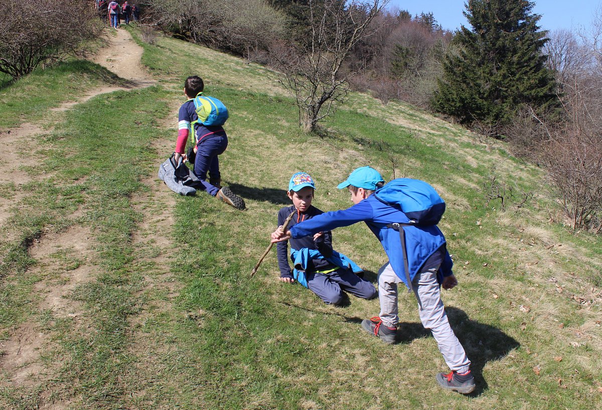 Bílé Karpaty jsou hezké v každé roční době. Příroda nebyla ještě úplně probuzená, ale tráva už se zelenala a barevné kytky dotvářely atmosféru. Výlet se moc vydařil a klukům přibyly do deníčků další turistické vizitky a hlavně hezké vzpomínky. Zatím je to s námi baví, a to je dobře.