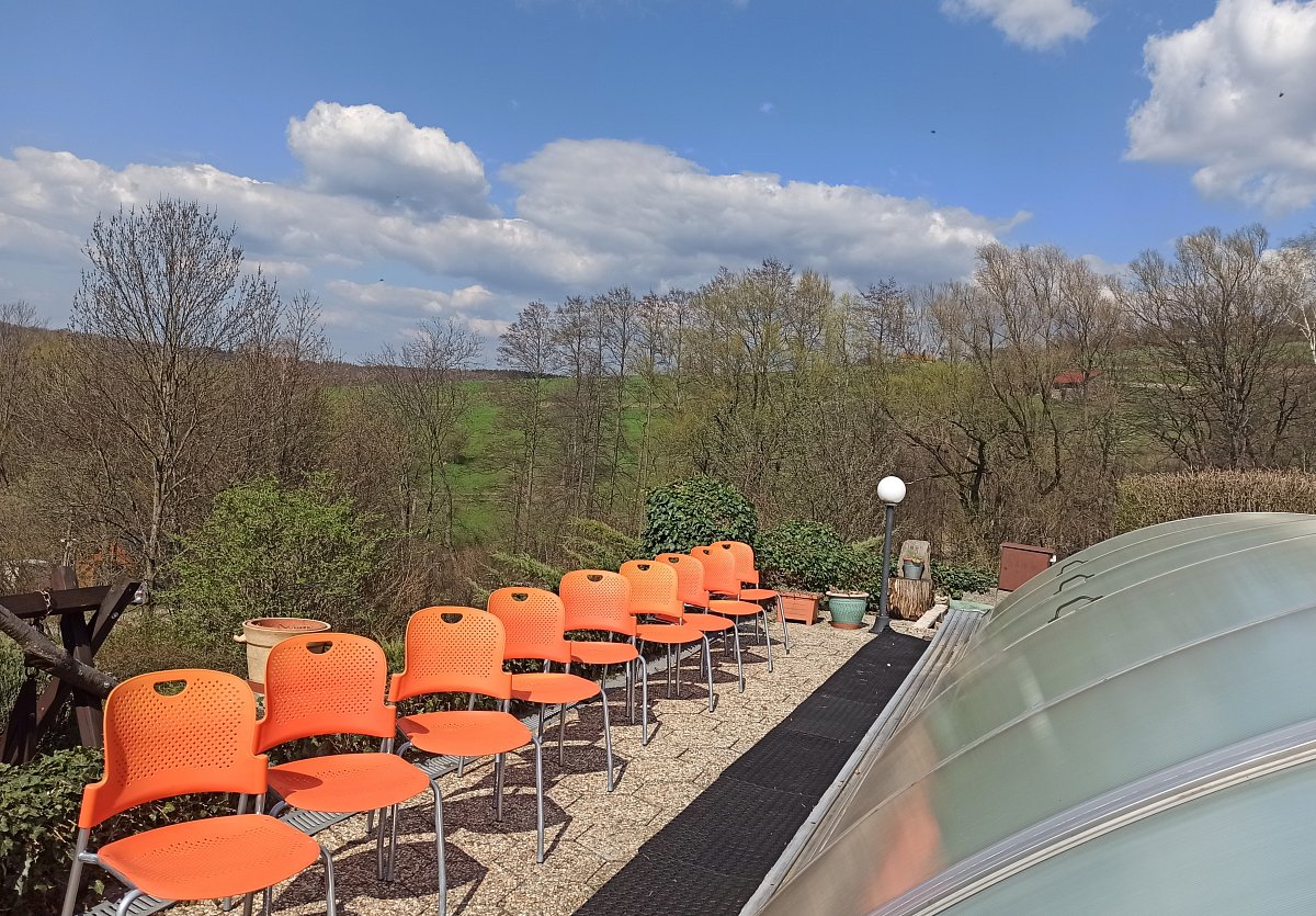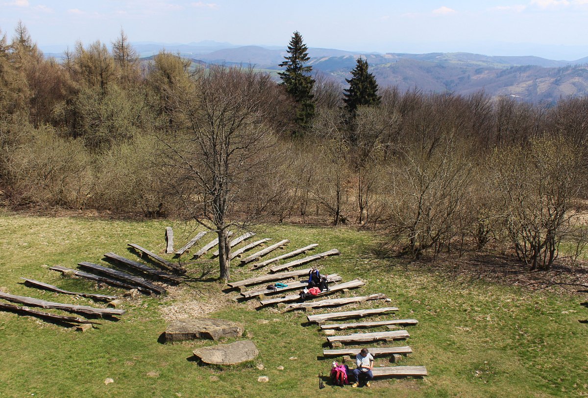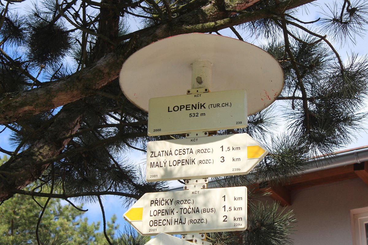 Rozhledy do okolí jsou úchvatné, zvlášť, když je takové blankytné nebe, na jaké jsme měli štěstí my. Obloha byla posázena kroužícími rogaly. Kluci jich napočítali 13. Když jsme se dost pokochali pohledem do kraje a posilnili se dobrou svačinou, vyrazili jsme zpět asi 2 km stejnou cestou. Potom jsme u Malého Lopeníku odbočili na žlutou značku a po ní jsem sešli k chatě Velký Lopeník, která nám nebyla neznámá. Před pár lety jsme tam strávili příjemnou týdenní dovolenou. Na teploměru bylo přes 20 stupnů C a bylo potřeba doplnit tekutiny. Pivo bylo dobře vychlazené a vnukům chutnala dobrá kofola. Bazén na koupání byl ještě zazimovaný, ale kluci si v okolí chaty našli zábavu. Pasoucího se osla a jezírko plné ryb.