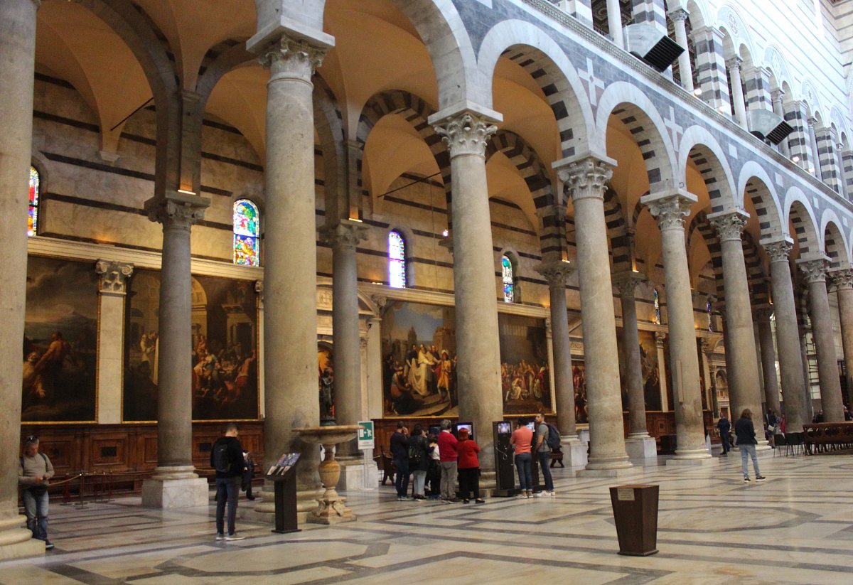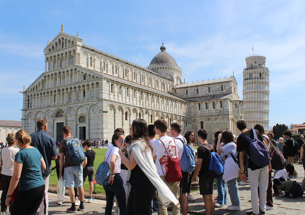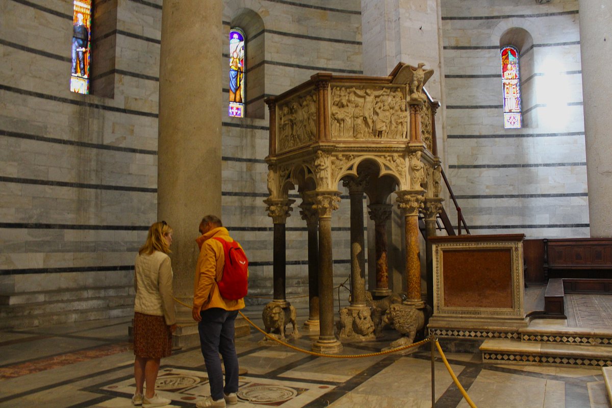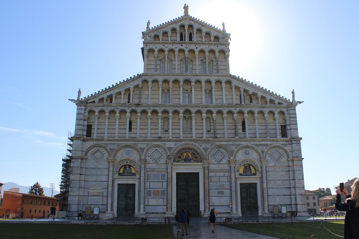 Na místě jsme byli mezi prvními. Pohled na bílé stavby uprostřed udržovaného zeleného trávníku byl úchvatný. Měla jsem představu, že tam někde stojí jedna opuštěná šikmá věž, ale ona byla obklopena krásnými mramorovými stavbami. Celkem jsou na jednom místě čtyři. Tomuto místu se říká "Pole zázraků". Nejprve jsme si prohlédli Baptisterium sv. Jana Křtitele, které měří na výšku 55 metrů. Stavba postavená již ve 12. století je obložena bílým mramorem a zdobená mnoha různými sochami.Samotná střecha, která připomíná citron, byla dostavěna až o dvě století později. Další památkou je hřbitov Camposanto Monumentale, nejkrásnější pohřebiště na světě. Dominantou je Katedrála Nanebevzetí Panny Marie, nejstarší budova z uvedených, která se začala stavět již v roce 1064. Tuto stavbu bohužel zastiňuje ona vyhlášená šikmá věž. Když jsme dokončili prohlídku chrámu, stačili prostranství mezi památkami zaplnit návštěvníci z celého světa. Počasí se vydařilo a snad každý se chtěl zvěčnit na památku před posledním divem, před šikmou věží. Tato osmipatrová stavba byla postavena na písečném podloží a krátce před dokončením už se začala naklánět. Celé generace stavitelů se snaží památku zabezpečit před zřícením.