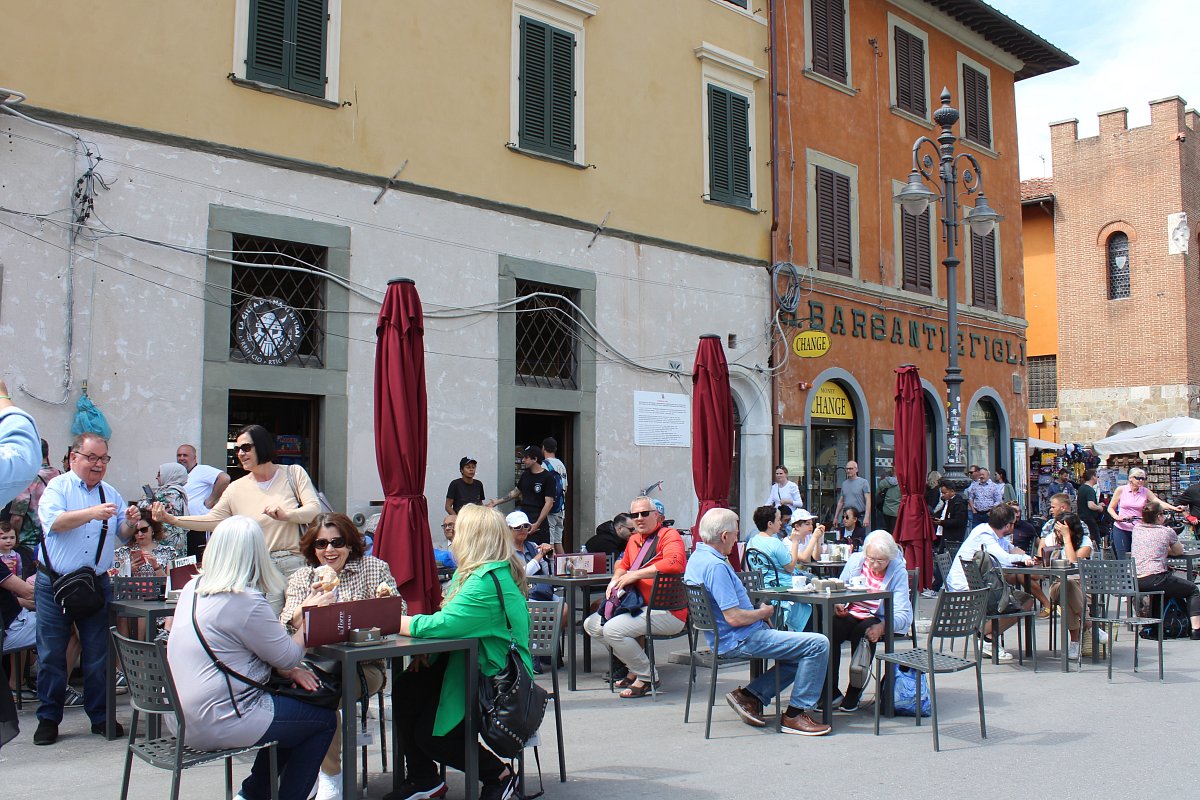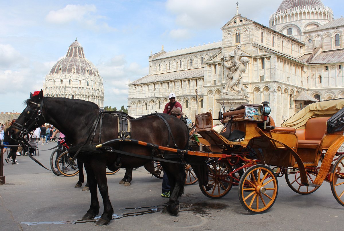 Na zahrádkách před restauracemi bylo živo a koníci s jejich majiteli čekali na turisty, kteří si tu krásu chtěli prohlédnout z koňského povozu. Nám stačila dobrá italská zmrzlina. V pravé poledne jsme se sešli u hodin a náš průvodce nás odvedl ještě na prohlídku náměstí a úzkých uliček.