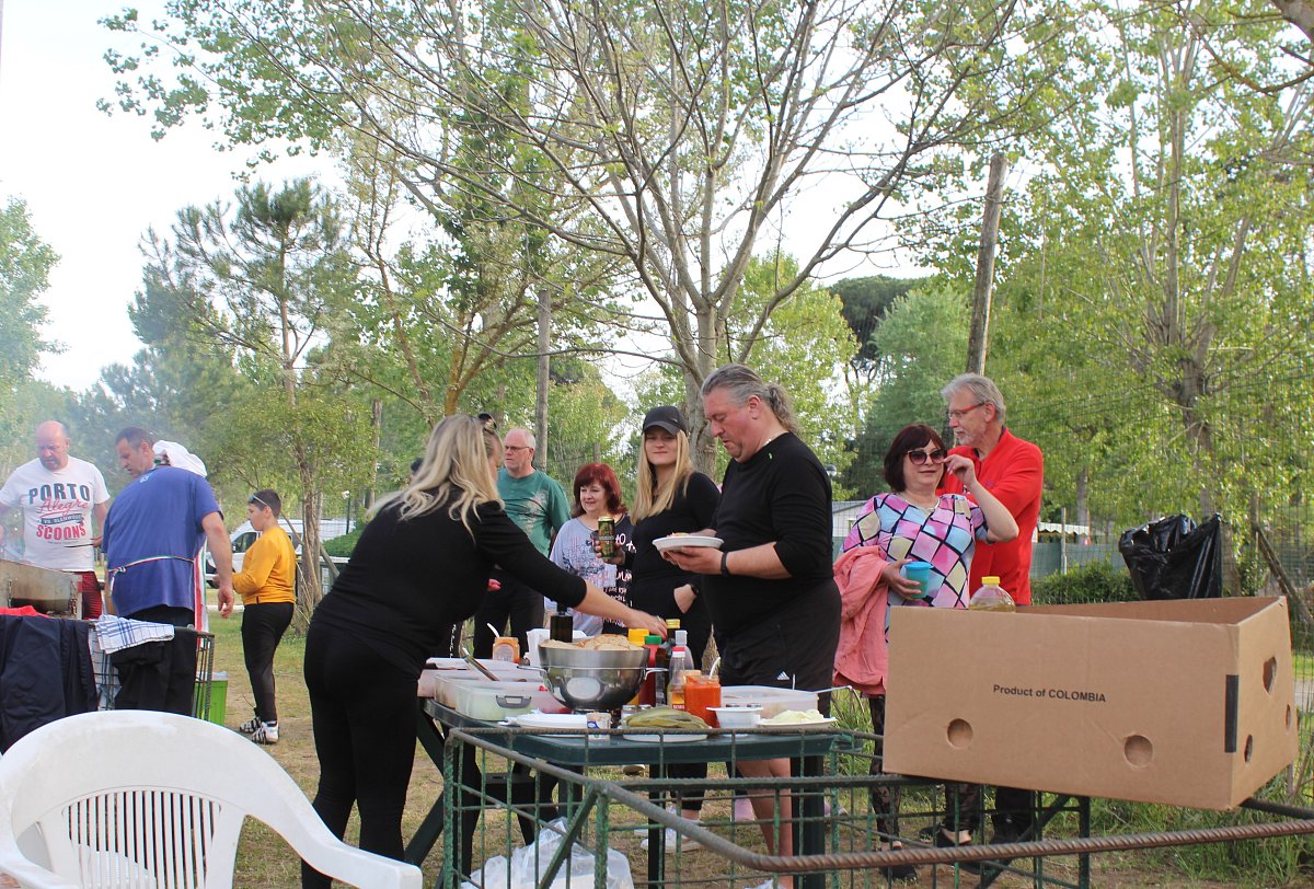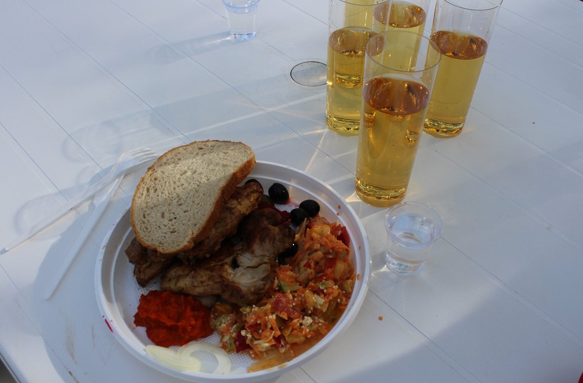 Zájezd se jmenoval "Grilování s Mirou" (pan majitel cestovky je Miroslav), a nás čekal večer plný překvapení. Naložené masíčko přivezli páni řidiči od nás, výborné rolády upekla manželka majitele, pomocníci připravili různé zeleninové saláty. K tomu se nalévalo výborné moravské vínko, valašská slivovička a na závěr byla ještě sladká tečka - nepřekonatelné valašské frgále.