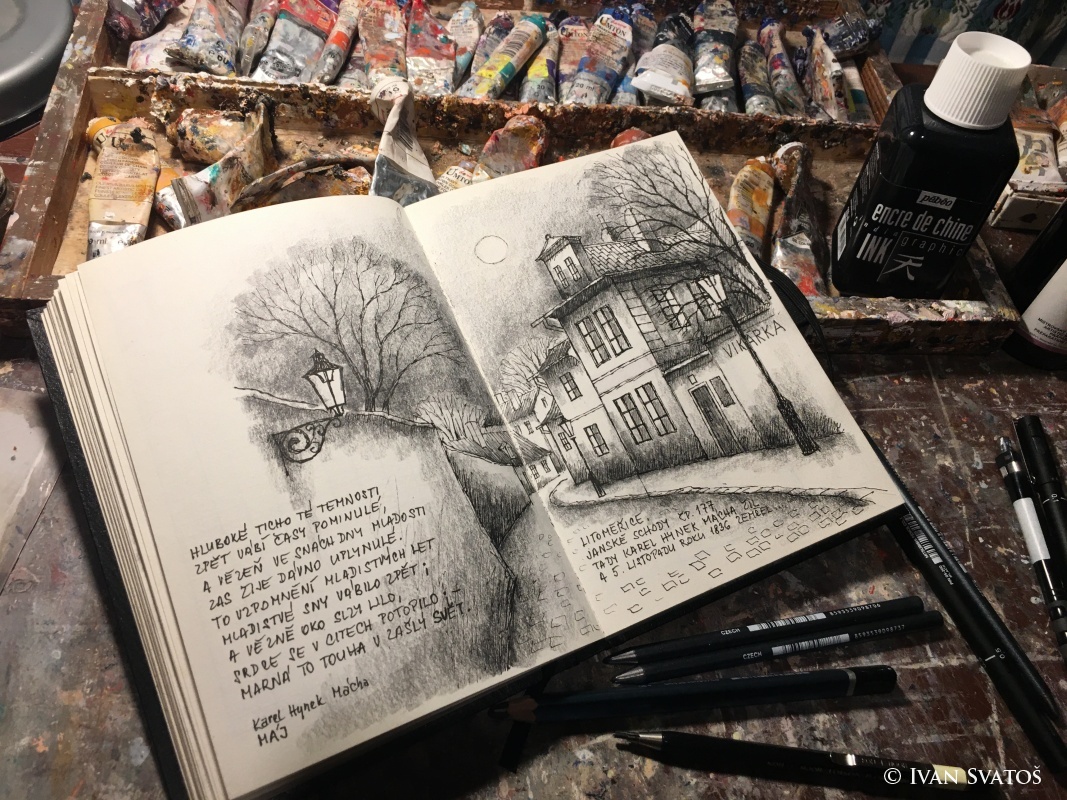 Stále se toulá po Praze, kde sbírá inspiraci pro nové pražské veduty, které potom poctivě olejomalbou ztvárňuje v tichu Vysočiny, kde tráví chvíle plné pilné práce.