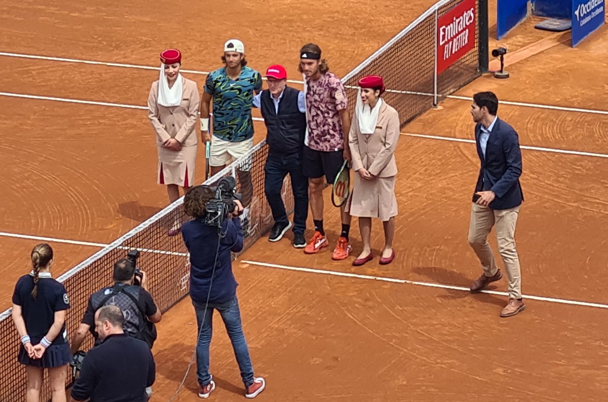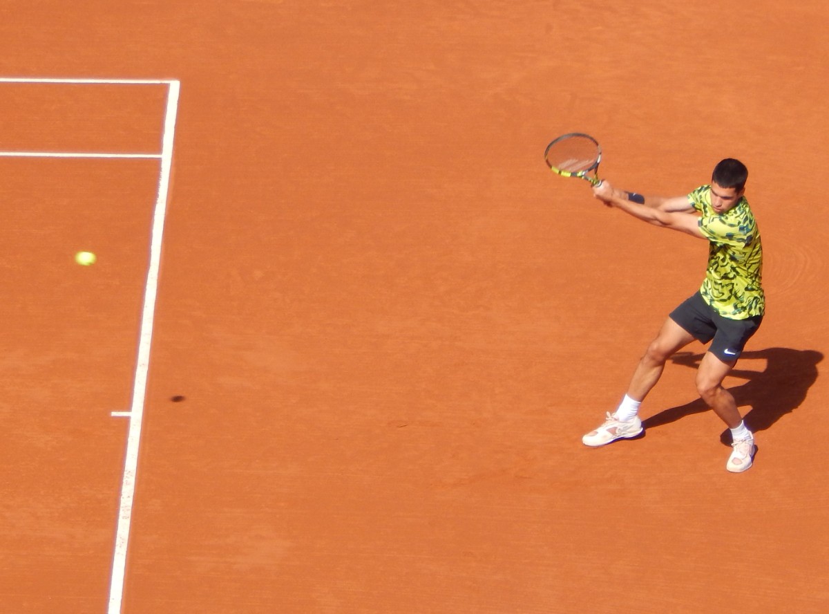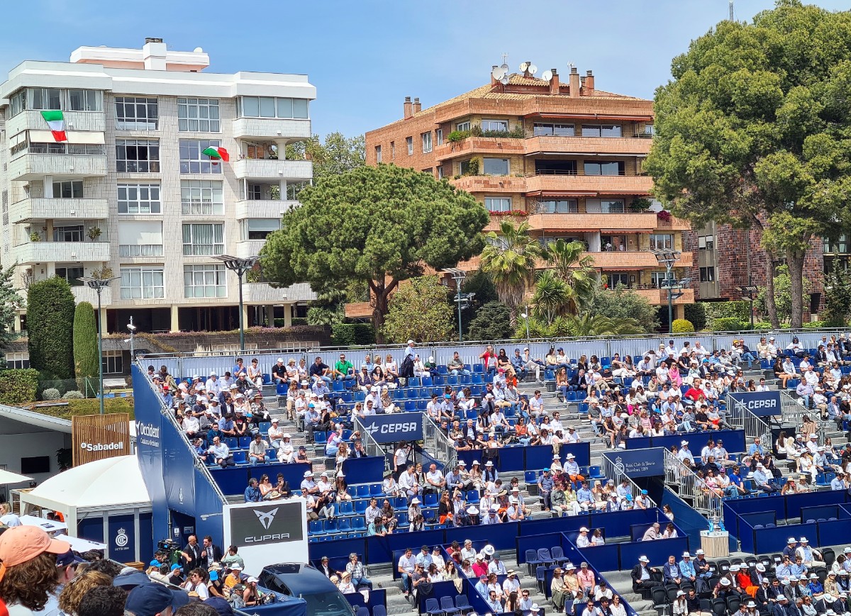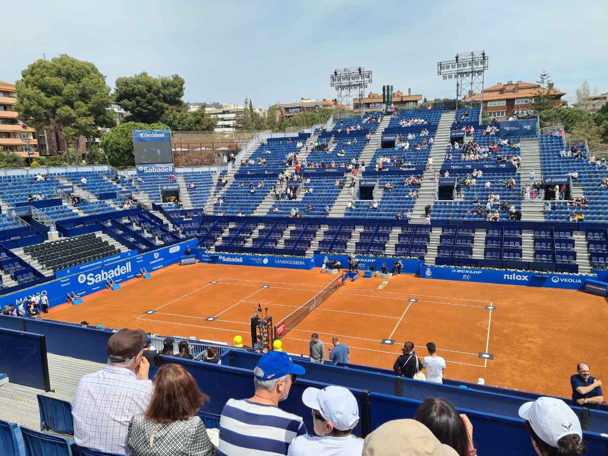 V areálu tenisového klubu za turnikety pro kontrolu vstupenek nás po obou stranách krátké cesty čekaly stánky s tenisovým zbožím, kóje sponzorů i s občerstvením. Hlavní kurt pojmenovaný podle vynikajícího španělského tenisy Reafela Nadala s kapacitou 8 400 diváků svojí velikostí připomíná kurt v Praze na Štvanici. Nás ihned pohltila atmosféra. Ve dvou oknech visely italské vlajky, aby podpořily Itala Lorezna Musettiho, který do prvního zápasu nastoupil proti Řekovi Stefanu Tsitsipasovi. Po Italově prohře vlajky zmizely. Ve druhém zápase kraloval místní miláček, nadějný, dnes už dvacetiletý, mladík Carlos Alcaraz, který smetl Brita Daniela Evanse, možná jako předzvěst nedělního turnajového vítězství.