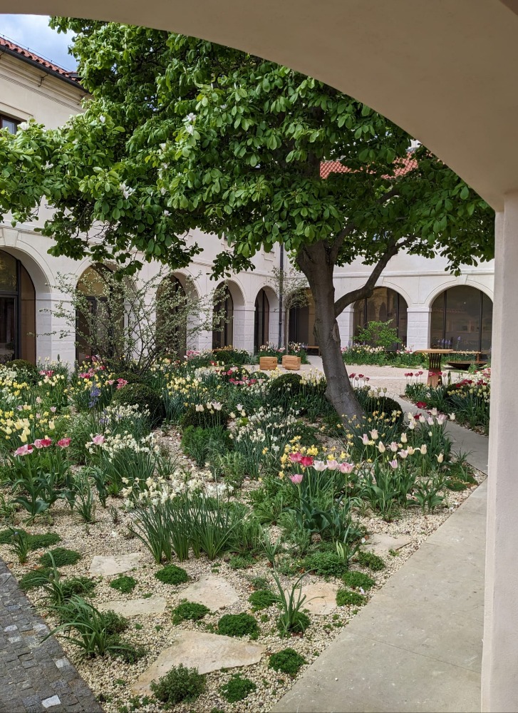 Nicméně je zde také možnost zastavit se zcela individuálně, zazvonit na nenápadný zvonek u vchodových dveří s cedulkou Fortna a jen sám či s partnerem se na chvíli ponořit v rajské zahradě osázené stromy, keři a květinami (aktuálně různobarevně kvetoucími tulipány) s nádherným výhledem na Prahu do nadčasového ducha tohoto místa. Posadit se a vnitřně si sám zameditovat.