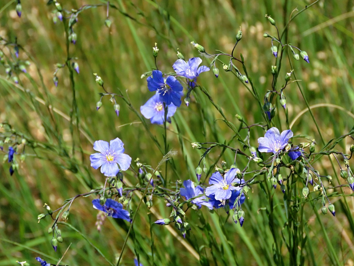Z Charvátců se polní cestou přibližujete ke Křížovým vrškům a čím jste blíž, tím je jeho barva modřejší. Z modré horniny opravdu není - pokrývá ho právě kvetoucí len. O něco výše se mísí s lesklými vlasy kavylu, až kavyl převáží. Uzounkou cestičkou stoupáte k vrcholovým skalkám. Nevím, co byste na vrcholku udělali vy, ale já jsem si nahlas zavolala poděkování matce přírodě za krásu, kterou nám připravila. Jít hned dál by byl opravdu hřích, je na čase vytáhnout svačinu, rozložit si ji na malé improvizované lavičce a přežvykováním dobrot z batohu umocnit dojmy z výhledů. Zatímco dole je úplný klid, tady nepřetřžitě fouká a stříbřisté vlasy kavylu pod vámi se vlní jako moře. Kruhový rozhled je odtud opravdu nádherný. Zleva vidíte Brník, Srdov, Oblík, dále protáhlou Ranou a vyčnívající Milou. Dlouhá je opravdu dlouhá. A pak už následuje změť vzdálenějších menších i větších kopečků na obzoru - Vraník, Kamýk, Líska a další. Vidím i Libčeves, odkud odjedu Švestkovou dráhou a pohledem k domovu na obzoru Házmburk a Řip. Pode mnou je Malý vrch a to už nastává čas se dokochat, sestoupit druhou stranou Křížových vršků zpět dolů a hajdy znovu nahoru. Předtím si ještě zaskotačím při pokusu pořídit si vrcholovou fotografii za pomoci samospouště. Ještě že mě nikdo při tom nevidí.