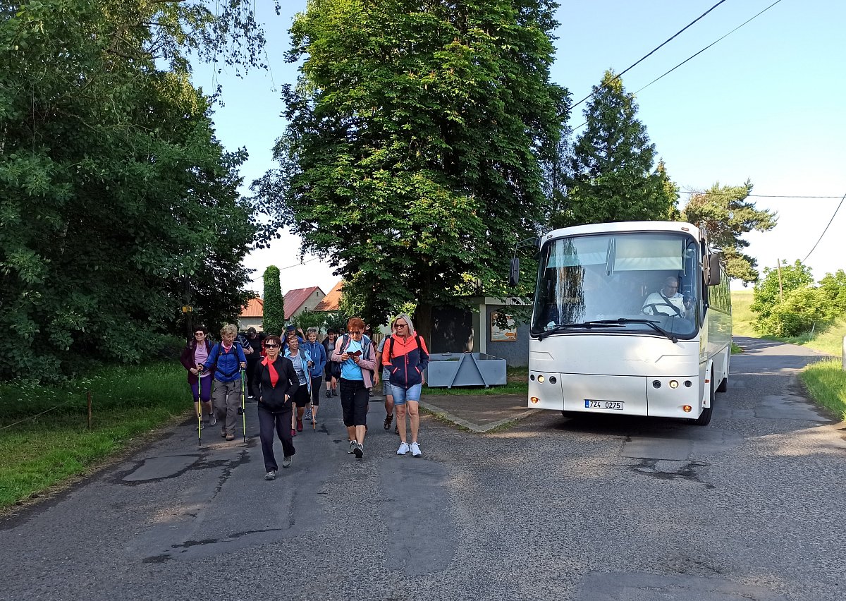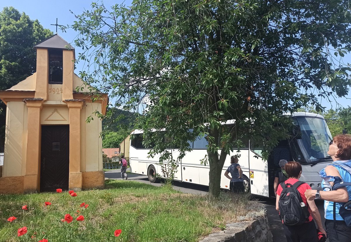 V obci Režný Újezd čekal náš autobus. Někteří si ještě odskočili na Boreč, my jsme to ale už vzdali, nic se nemá přehánět.