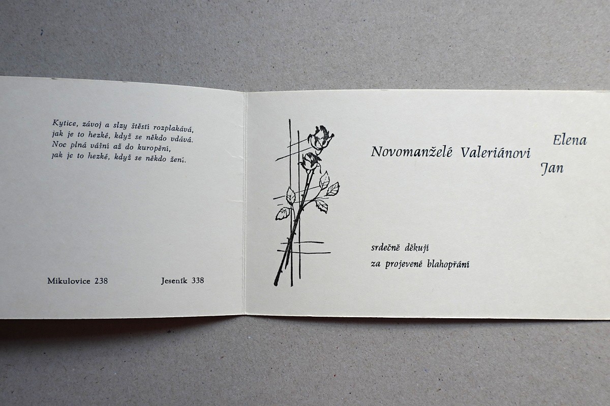 Z obřadu jsme přijeli k nám domů, kde měla být nachystána svatební tabule a vonět jídlo. Kuchařka měla nějaké zpoždění, na stolech byly sice nažehlené bílé ubrusy, ale to bylo tak nějak vše. Pamatuji si, že jsme se sestrou zachraňovaly trapnou situaci a rychle chystaly příbory, talíře, skleničky. A jen jsme si mezi sebou naštvaně špitaly, co paní kuchařka dělala, že nic neudělala…