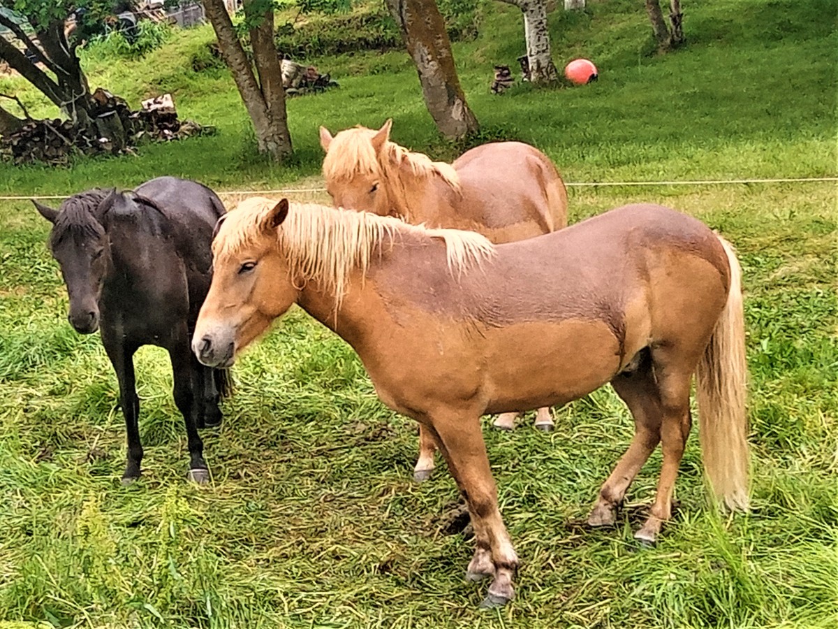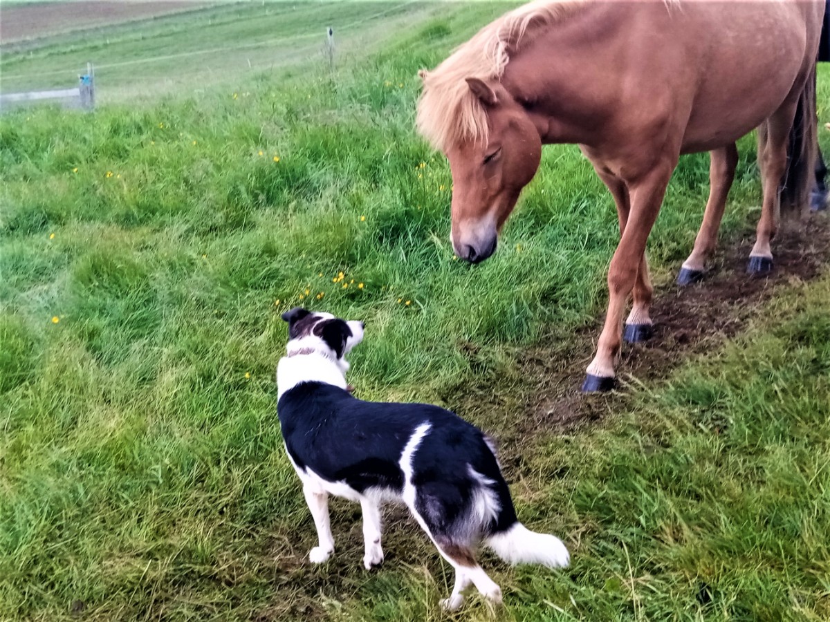 Konečně „doma“. Vítá nás roztomilý pejsek. Zprvu se ho bojím, ale brzy se s ním spřátelíme. Z domu vychází žena středního věku. Jmenuje se Abba. Se svým manželem koupila tuto farmu před osmi lety a ve čtyřech pokojích přijímá hosty z celého světa. Tato usedlost existuje již od devátého století, kdy sem přišli první Vikingové. Máme pokoj s výhledem na zadní část farmy. Pozorujeme pasoucí se koně, kteří se občas mezi sebou „perou“ a během světlé noci spí vleže na zemi. Platí to ale pouze v létě, v zimě spí vestoje. Mezi nimi se proplétají ovce, které snadno vyšplhají až na vrchol strmého kopce za farmou. Tříletý strakatý pes, který nás přivítal, má instinktivně potřebu ovládat všechna hospodářská zvířata. S ovcemi mu to vychází, respektují ho. Koně jsou však příliš velká zvířata a ze psa si nic nedělají. Náš čtyřnohý kamarád rovněž pomáhá hospodáři zavírat na noc slepice. Jsou zde i tři kohouti, kteří spolu vzájemně soupeří. Stejně jako všechny malé islandské farmy, měla i Abba ještě nedávno dvě krávy. Dnes je ale chov hovězího skotu soustředěn na velkých farmách a drobní farmáři již krávy nedrží. Rovněž počet ovcí na Islandu klesá – za posledních třicet let se snížil na polovinu. Ačkoliv je jich stále více než lidí, chov ovcí na vlnu a maso již islandské farmáře neuživí. Musí mít proto ještě další zdroj příjmů. Většina z nich někde pracuje. Abba má sto ovcí, kozy a osm koní. Koní je na Islandu hodně, ale jsou to spíše velcí domácí mazlíčci. Islanďané na nich rádi jezdí a drží si je i obyvatelé měst.