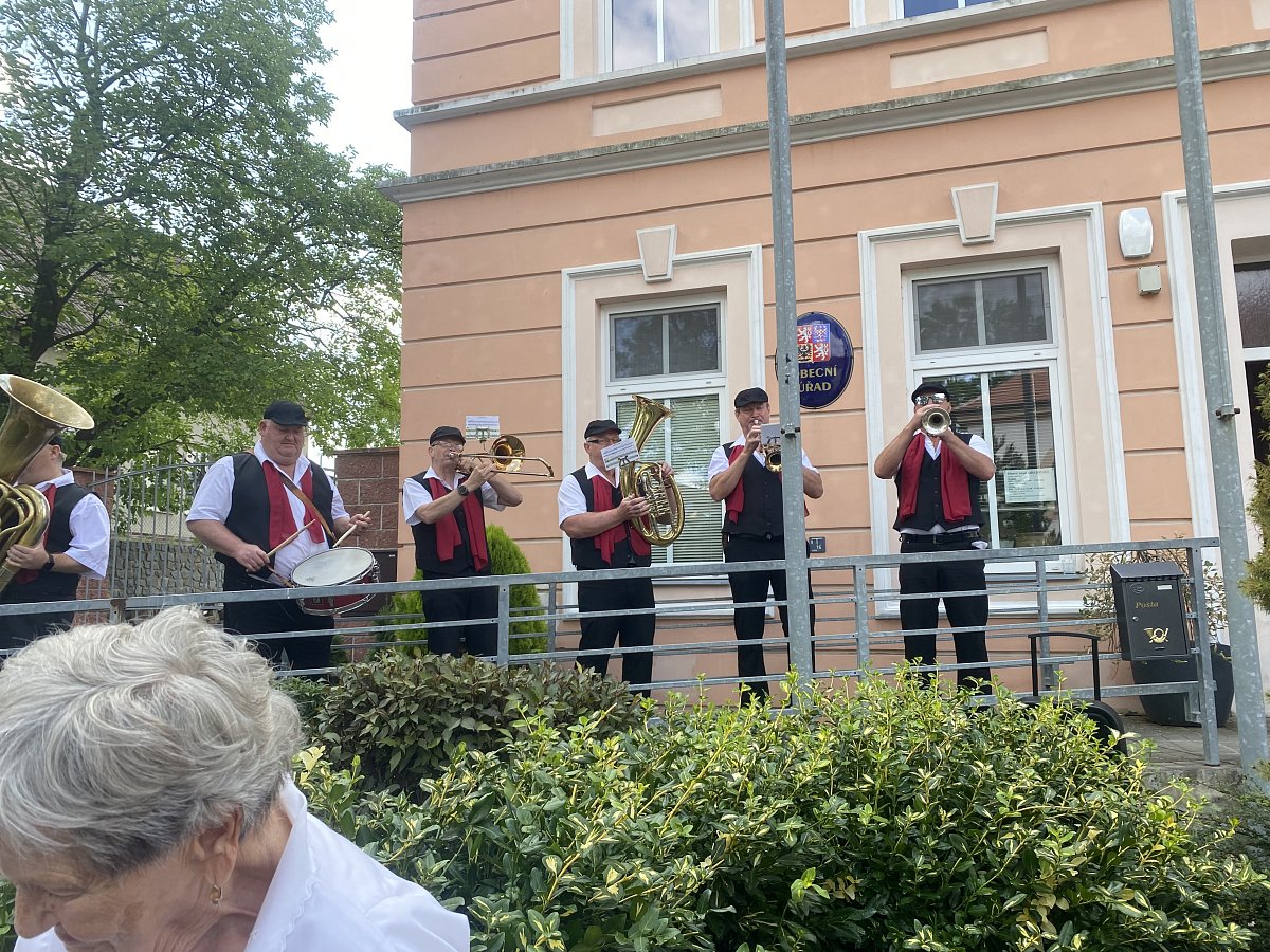 Před úřadem je i místní kapela, což nás velice mile překvapuje. Poprvé vidím i paní starostku obce, se kterou j sme si před akcí jen asi 2x telefonovaly. Ani jedna z nás v setkání nedoufala.