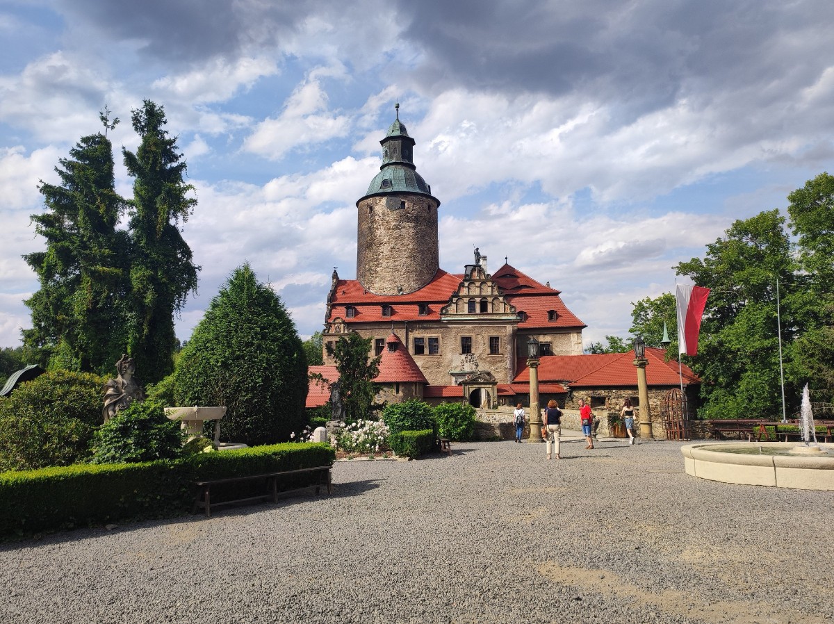 Rozhodli jsme se udělat si výlet i kousek za polské hranice, a sice na hrad Czocha. Za tím účelem jsme museli projet prakticky celé Jizerské hory na jejich druhý konec. Pohádkový hrad Czocha nejdeme jen 8 km za hraničním přechodem v Srbské poblíž Nového Města pod Smrkem. Stojí na skalním ostrohu nad přehradním jezerem na řece Kwisa. Byli jsme tam už asi třikrát a pokaždé jsem hradem okouzlená. Tentokrát si na nás přichystal překvapení a přesně při vstupu hradní branou začaly na zem nečekaně dopadat první dešťové kapky. Deštníky jsme samozřejmě měli v autě a déšť jsme nakonec přečkali pod střechou kamenného hradního altánu. V době vzniku hradu patřilo území Českému království. Cestou zpět jsme se zastavili na česko-polských hranicích, kde jsou za potokem na polském území zajímavé objekty. Díla, jejichž hlavními součástmi jsou hudební nástroje. Udělala jsem si pár fotek, ale nepodařilo se mi zjistit, oč se jedná.