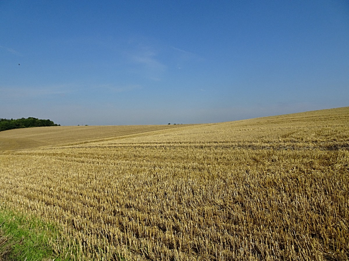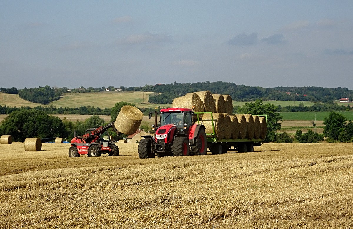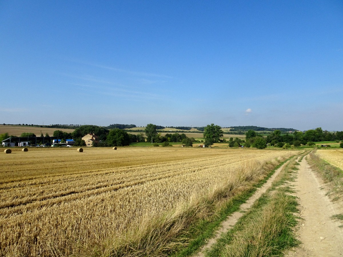 Vykročila jsem nejkratší cestou za město do polí. Ráno trochu sprchlo a cesta je ještě mokrá. Na drátech cvrlikají vlaštovky, na stromě řvou špačci, na střeše čimčarají vrabčáci. Hřivnáč pospává. Vytahuji foťák a už cvakám. Jak málo stačí ke štěstí! A co teprve když vyjdu za poslední domy. Na strništi stojí traktor s valníkem, naloženým balíky slámy. Kolem něj se prohání sám velký Manitou. Je to nakladač, opatřený takovou vidličkou. Napíchne balík, přiveze ho k valníku a jako nic přidá k ostatním. Stojím na cestě a pozoruji ho jako by se tam dělo bůh ví co. Jak nejsem řidič, toužím si manitoua vyzkoušet. Kopečky na obzoru nejsou v oparu prakticky vidět. Srnky na obzoru i vznášející se luňáci jsou nefotitelní, ale krásní. Blažená se na nejvyšším bodu polní cesty rozhlížím kolem sebe a když mi kapsa z batohu ohlásí 3,5 km, řadím zpátečku.