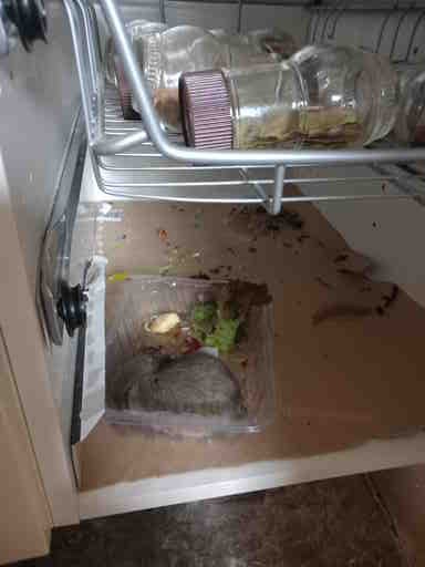 Než se k nám po týdnu dostala zásilka s objednanou odchytovou klecí, situace byla již patřičně pokročilá. "Máma", kterou jsme nejdřív pokládali za jediného příslušníka plšího rodu u nás na chalupě, obsadila celý prostor s několika drátěnými šuplíky a prostě si tam "bydlela". Střídala patra, nakukovala do krabic s moukou, vloupala se do piksle s dětskou krupičkou, pospávala, stočená do klubíčka, na skleněných kořenkách. A samozřejmě hojně navštěvovala toaletu. Po týdnu z ní byl už téměř ochočený "domácí mazlíček". Dostala jméno hodné plšího vůdce Alfons I.
