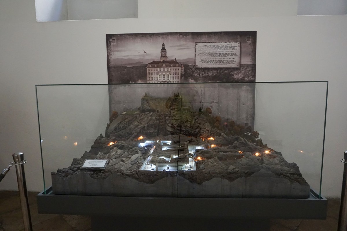 Pak bohužel přicházela rána za ranou. První světová válka, hospodářská krize, finanční problémy Hochbergů. Tou největší byl nástup fašismu a konfiskace zámku Velkoněmeckou říší. Měl se stát hlavním sídlem Hitlerova válečného velitelství. Během této přeměny byla odvezena nebo zničena velká část vybavení interiérů. V podzemí začal vznikat obrovský komplex - protiletecký kryt pro nacistickou elitu a další prostory nejasného určení, možná továrna či vojenská laboratoř. Za nelidských podmínek tu dřeli vězni z koncentračního tábora Gross-Rosen. Když se přiblížila Rudá armáda, Němci část tunelů odstřelili. Spekuluje se, že zasypané chodby mohou dodnes ukrývat některé ztracené zámecké sbírky. Část zachovaných podzemních prostor je v současnosti zpřístupněna návštěvníkům.