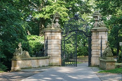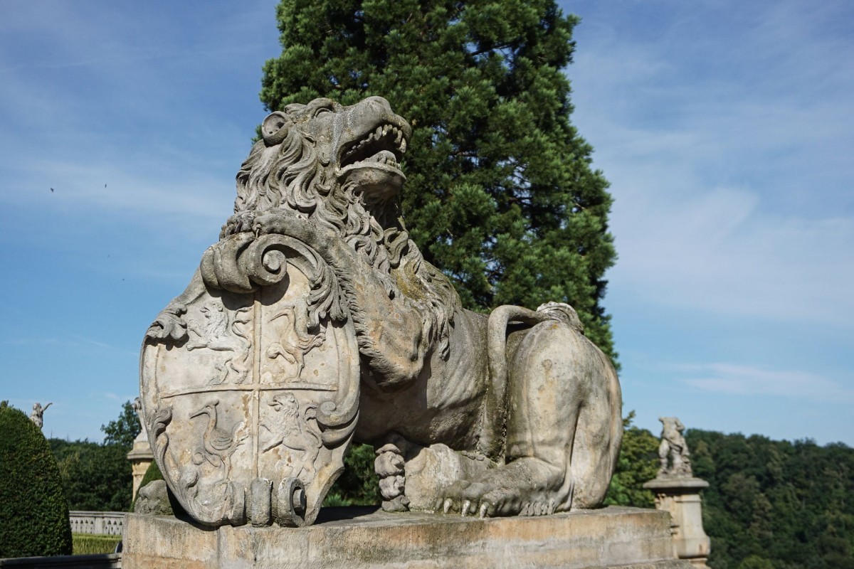 Při průchodu ozdobnou branou nás sledovaly dvě půvabné kamenné sfingy.
