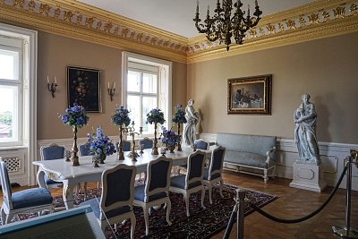 Po vyslechnutí těchto informací nám bylo jasné, proč je v zámeckých interiérech jen zlomek autentického vybavení. Stylovým nábytkem z různých období je zařízena jen část místností.