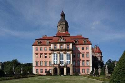 Książ, hrad přeměněný během staletí na zámek, je největší v Dolnoslezském vojvodství a třetí největší v Polsku (po Malborku a Wawelu). Navštěvují ho tisíce domácích i zahraničních turistů. Abychom se vyhnuli případnému návalu, stáli jsme u okénka pokladny hned v otevírací hodinu. Z nabízených tras jsme si vybrali vstupenky do zámeckých prostor, na parkánové zahrady a do skleníku.