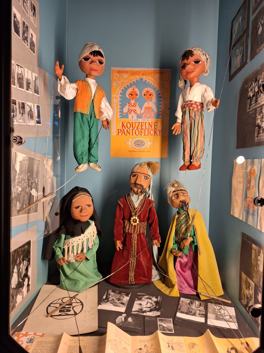 Jaké bylo počasí v den, kdy jsme navštívili Labyrint, je ostatně vidět z úvodní fotografile k tomuto článku. Nad budovou divadla Drak je ocelově šedá obloha, ze které každou chvíli prší. V šatně Labyrintu jsme si pláštěnky a deštníky mohli konečně odložit. V prvním podlaží je stálá výstava Příběh Draku 1958–2018, která vypráví o historii divadla. Děti zde zaujaly především vystavené loutky, které hrály v jednotlivých představeních divadla Drak.