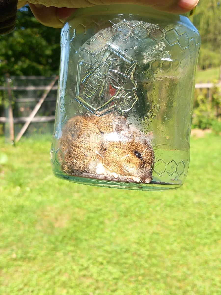Mé malé "plší dobrodružství" už znáte z "Mých radostí", kterou skutečně bylo a k opravdové dokonalosti mé harmonie s přírodou přispěla nečekaná návštěva z jakéhosi vzdáleného příbuzenstva "plšího bratrstva". Myšice, zřejmě lesní, ale možná i malooká, byla svým nečekaným vstupem do mé domácnosti tak konsternována, že se nechala chytit do láhve od medu (tedy umyté). Jelikož v domácnosti neškodná a v přírodě zřejmě užitečná, byla vypuštěna na svobodu. Po letmém pohlazení jedním prstem po narezlém kožíšku zmizela pod listím.