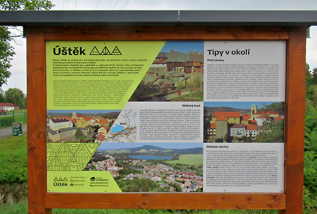 Houbaření máme za sebou a já vám chci nabídnout ještě jeden zážitek. Cesta do Splavů vede kolem Úštěku vpravo a kolem rybníka Chmelař vlevo. Jednou už jsme se tam byli podívat, ale to je dávno a bylo jaro. Tentokrát už je podzim, který se vyznačuje letními teplotami, takže některá koupaliště ještě fungují. Oznámila jsem spolucestujícím, že na zpáteční cestě se tam musíme zastavit. A protože jsou oba hodní a mají mě rádi, tak mi vyhověli. Staré Splavy jsme opouštěli docela radostně, protože jsme nejeli s prázdnou. Je to uvedeno v předchozím článku. Malé zastavení bylo ještě v Jestřebí a pak už jsme uháněli směr Ústěk a rybník Chmelař.