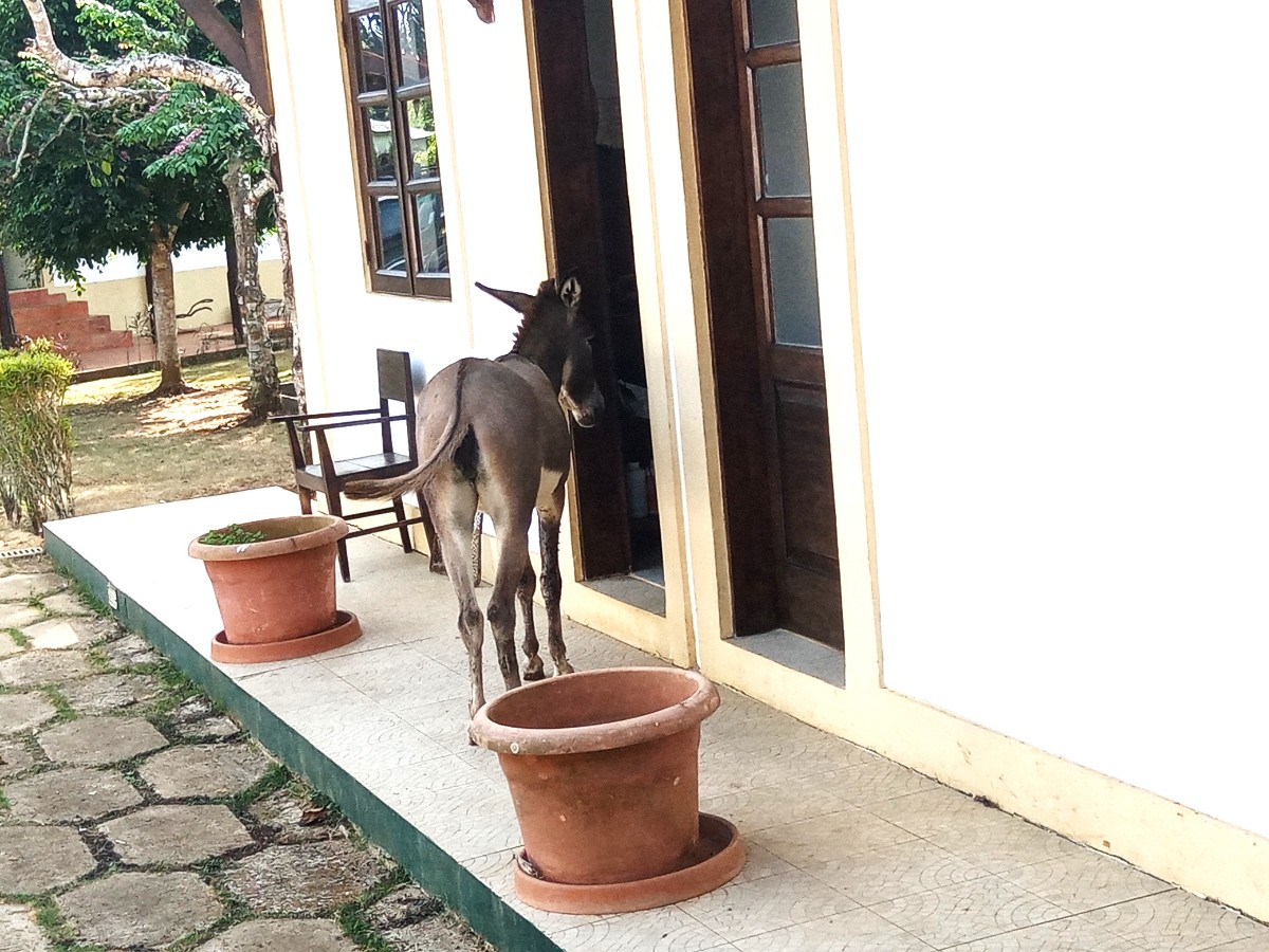 Na vybrané ubytování jsme se těšili, ale brzy přišlo rozčarování. V pokoji nefunguje internet a postel má velikost pro jednoho většího člověka. Joana je ale velmi vstřícná a brzy nám najde jiné ubytování, které bude ovšem k dispozici až za tři dny. Kromě malé postele je však Roça Vale dos Prazeres ideálním místem k pobytu. Jsou zde tři chatičky, dva osli a tři psi. Oslíci jsou přes den vypouštěni na ulici, aby si s nimi mohly hrát místní děti. Dva ze psů jsou obrovští, ale dobráčtí. Ricardo, partner Joany, nám půjčil terénní auto. Obyčejným autem bychom se všude nedostali. První den vyjíždíme do nadmořské výšky přes 800 metrů, kde je příjemná restaurace s výhledem do džungle. Jídlo je velmi kvalitní, jsou podávány především ryby. Mečoun, sardinky, tuňák. Další místní ryby neznáme. Rovněž mezi ovocem je spousta druhů, které jsme nikdy neviděli. Na Svatém Tomáši je údajně nejlepší čokoláda na světě. Místní specialitou jsou kávová zrna zalitá čokoládou. V této nadmořské výšce je velmi chladno. Personál restaurace nám proto zapůjčil deky. Je trochu paradoxní, že jsme přijeli z tropických teplot panujících v září v České republice do rovníkové Afriky, kde je nám zima. Příjemně svěží vítr fouká i na břehu moře. Teplota se pohybuje mezi 25 a 29 stupni, vlhkost vzduchu je však velmi vysoká. Cestou zpět projíždíme chudými čtvrtěmi hlavního města, které se nazývá stejně jako celý ostrov. Podle Ricarda potomci otroků získali vrozený odpor vůči jakékoli práci a téměř nikdo z nich nepracuje. Na rozdíl od mnoha jiných afrických zemí však na Svatém Tomáši nikdo nikdy netrpěl hladem. Úrodná sopečná půda je štědrá. Stačí natáhnout ruku a oběd je na talíři. Místní lidé žijí ze dne na den. Pokud mají peníze na druhý den, nikdo je nedonutí pracovat. Ricardo potřebuje pět zaměstnanců, ale musí jich zaměstnávat deset. Když totiž některý z nich dostane výplatu, do práce přijde teprve tehdy, až mu dojdou peníze. Podle Ricarda Svatí Tomášané peníze utrácejí hlavně za alkohol. U silnic se prodává v plastových lahvích tekutina mléčné barvy – palmové víno. Joana zde trvale žije dva roky a Ricardo již od roku 2010. Oba jsou Portugalci a jsou velmi aktivní. Joana má obchod s čokoládou a jinými místními produkty a spravuje naše ubytovací zařízení. Ricardo vlastní realitní kancelář, skupuje nemovitosti, provádí jejich rekonstrukce a se ziskem je prodává. Má rovněž obchod s náhradními díly na auta.