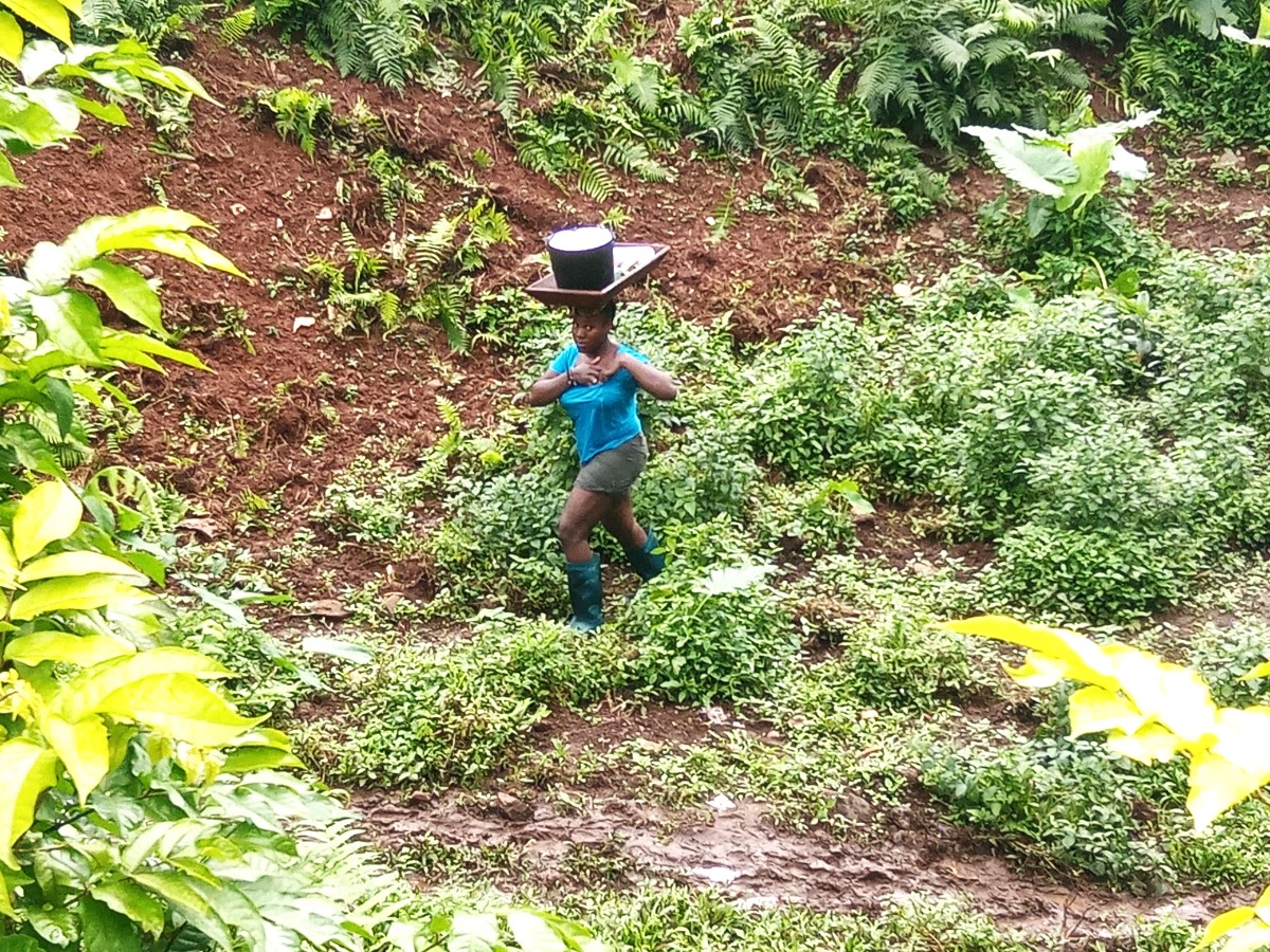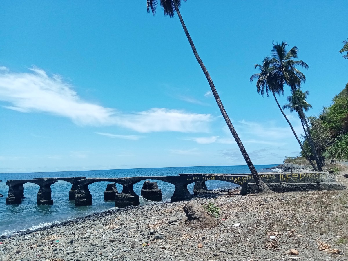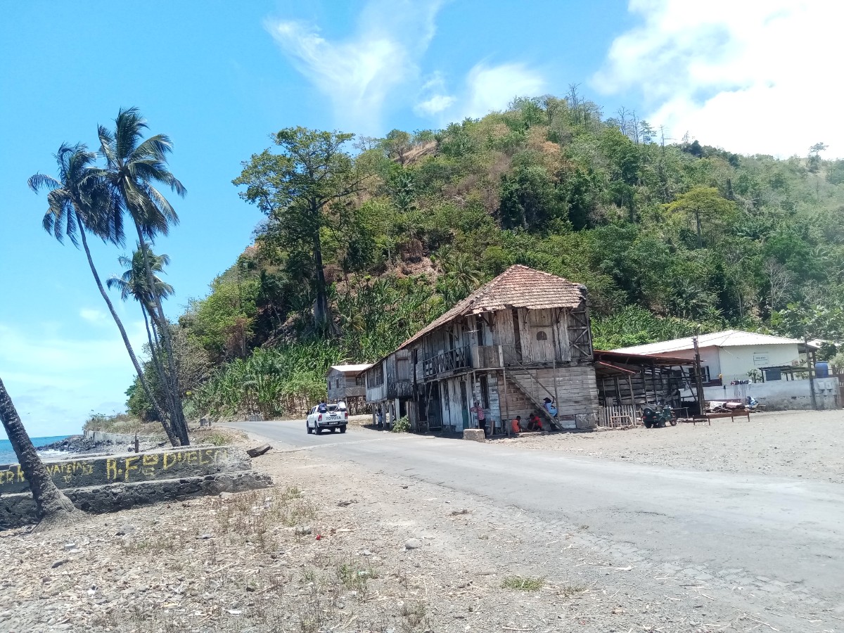 Na konci silnice na západním pobřeží leží vesnice Santa Catarina. Vede tam rozbitá silnice z Mucumbli. Je zde kupodivu velký provoz, hlavně motorky a kolektivní taxíky. Scenérie je úchvatná. Jedeme podél pobřeží Atlantiku, mohutné vlny se tříští o skalnatý břeh. Projíždíme jediným tunelem na Svatém Tomáši, je fotogenický. Silnice pokračuje ještě asi dva kilometry za Santa Catarina. Končí v malé obci u řeky. Před dvěma lety se zde při tropické bouři zřítil most. Jeho rozvaliny leží v řečišti. Vynalézaví vesničané si vyjeli cestu džunglí, našli si mělký brod a motorky, ale i auta se takto dostanou na druhou stranu řeky. Stejný osud potkal na Svatém Tomáši mnoho dalších objektů. Kostely, školy, nemocnice a koloniální domy se po odchodu Portugalců pomalu rozpadají. Vláda nemá peníze na jejich obnovu, začínají toho využívat Číňané, kteří staví silnice, školy a průmyslové objekty. V Santa Catarina se dáváme do řeči s rybářem pocházejícím z Kapverdských ostrovů. Ukazuje jizvu na předloktí, před třemi měsíci mu žralok rozerval ruku. Dodnes s ní nepohne. Zahání od našeho auta čtveřici školáků, pohrdavě je označuje za Angolany, podle země jejich předků. Cestou zpět potkáváme davy školáků v uniformách. Sluší jim. Nemůžeme se vynadívat na ženy nesoucí cokoliv na hlavě. Například nádobí umyté v řece a naskládané na sobě. Nechápeme, že jim nic neupadne. Do obchodu se tady nechodí s taškou, ale s kbelíkem nebo lavorem na hlavě, do kterých se naskládá nákup a jde se domů. Některé ženy mají na hlavě podložku, jiné nesou náklad přímo na kudrnaté hlavě. Mladé ženy si do kudrlinek připlétají dlouhé tenké copánky v různých barvách, včetně červené nebo zlatavé. Malé holčičky si do vlasů vplétají šňůrky s barevnými korálky.