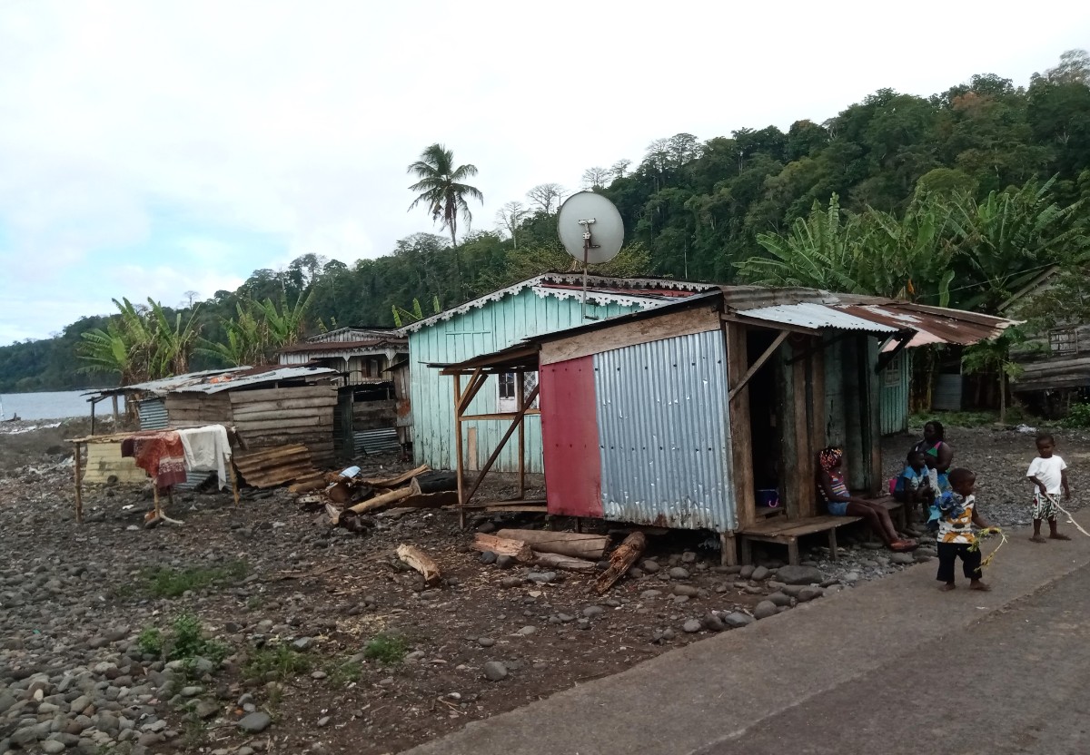 Nadešel den stěhování. Sbohem evropsky fungující domove v Roça Vale dos Prazeres! Podle fotek na Booking.com vypadalo nové ubytování luxusně. S majitelkou apartmánu Takina jsme se měli sejít u benzínové pumpy v lokalitě Santana. Jak se ale poznáme? Joana prohlásila, že jiná pumpa v Santana není a že budeme na té čerpací stanici jediné tři bílé osoby. Pumpu jsme sice našli snadno, ale kromě nás tam byli všichni černí. Lehce jsme znervóznili. Svatí Tomášané jsou ale přátelští a nápomocní. Obsluha pumpy zavolala ze svého mobilu majitelce apartmánu. Ukázalo se, že místo ní přijel černý recepční. Jeli jsme za jeho autem. Sto metrů za čerpací stanicí zahnul do domorodé čtvrti. Úzká ulička byla vydlážděná jako chodníky v našich městech. Mezi kokosovými palmami se hemžily nahé děti, kvičící selátka, pípající kuřátka a polehávali vyhublí psi. Na dřevěných verandách vetchých chatrčí po nás zvědavě pokukovaly otylé černé dámy. Všude se povalovaly hromady odpadků. Tak tady bude náš luxusní apartmán? Na konci uličky nad mořským útesem se tyčilo několik větších dřevěných staveb. Místní smetánka? Pravděpodobně. Do apartmánu se sešlo po dlouhých plochých schodech. Beton, dřevo a sklo. Pokus o luxus, ale bez většího úspěchu. Všechno vypadá nedodělaně nebo nepovedeně. Neuměle přivařený rezavý kus železa slouží jako klika. Betonová podlaha je samá šmouha. Budou zde problémy, výpadky internetu, elektřiny i vody. Z terasy je ovšem nádherný výhled na moře a pobřeží. Moře doslova řve. Na můj vkus až příliš. Nejsem si jistá, zda v tom rámusu vůbec usnu. Máme však dvě velké postele.