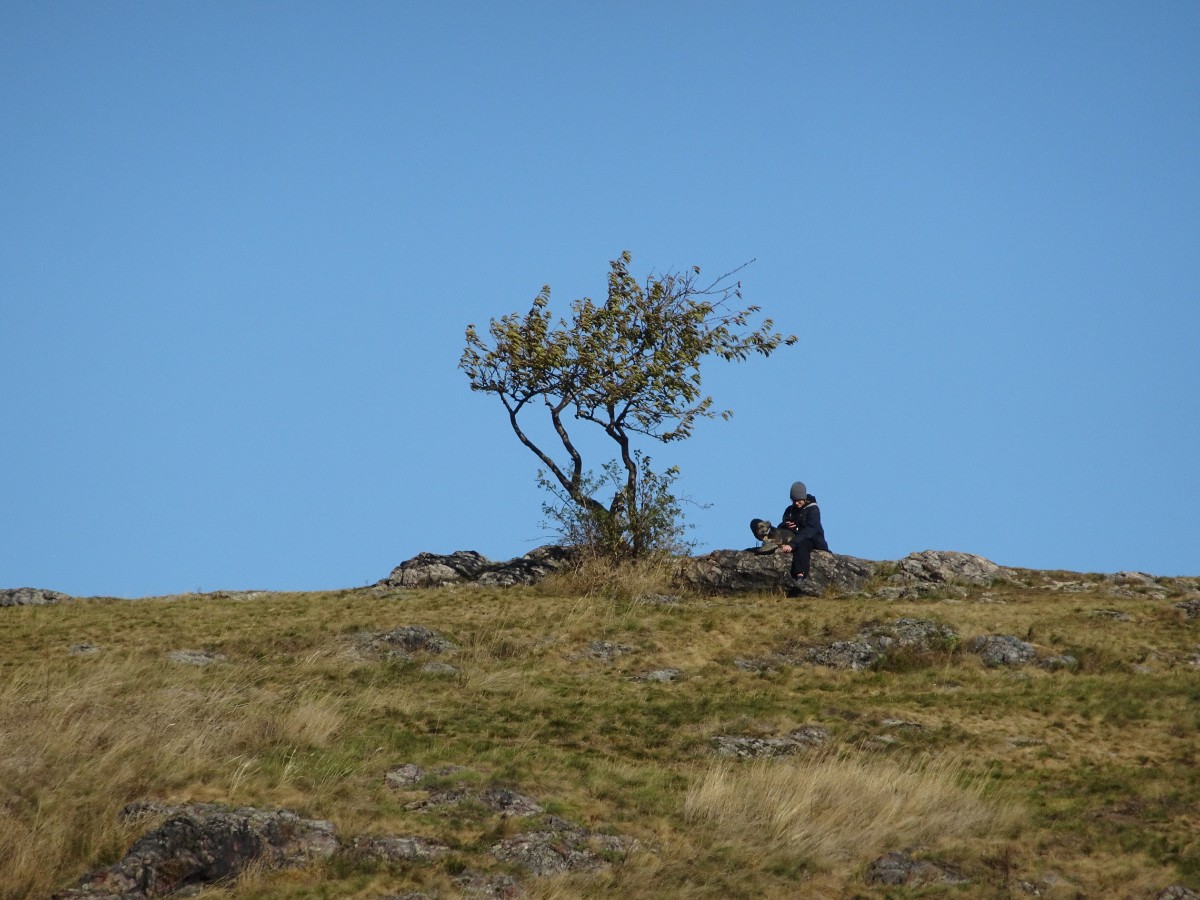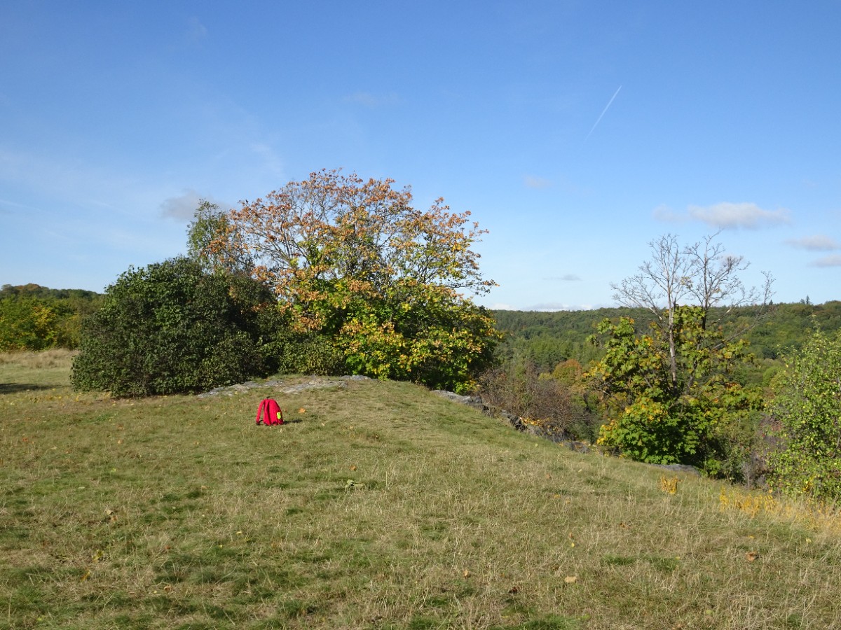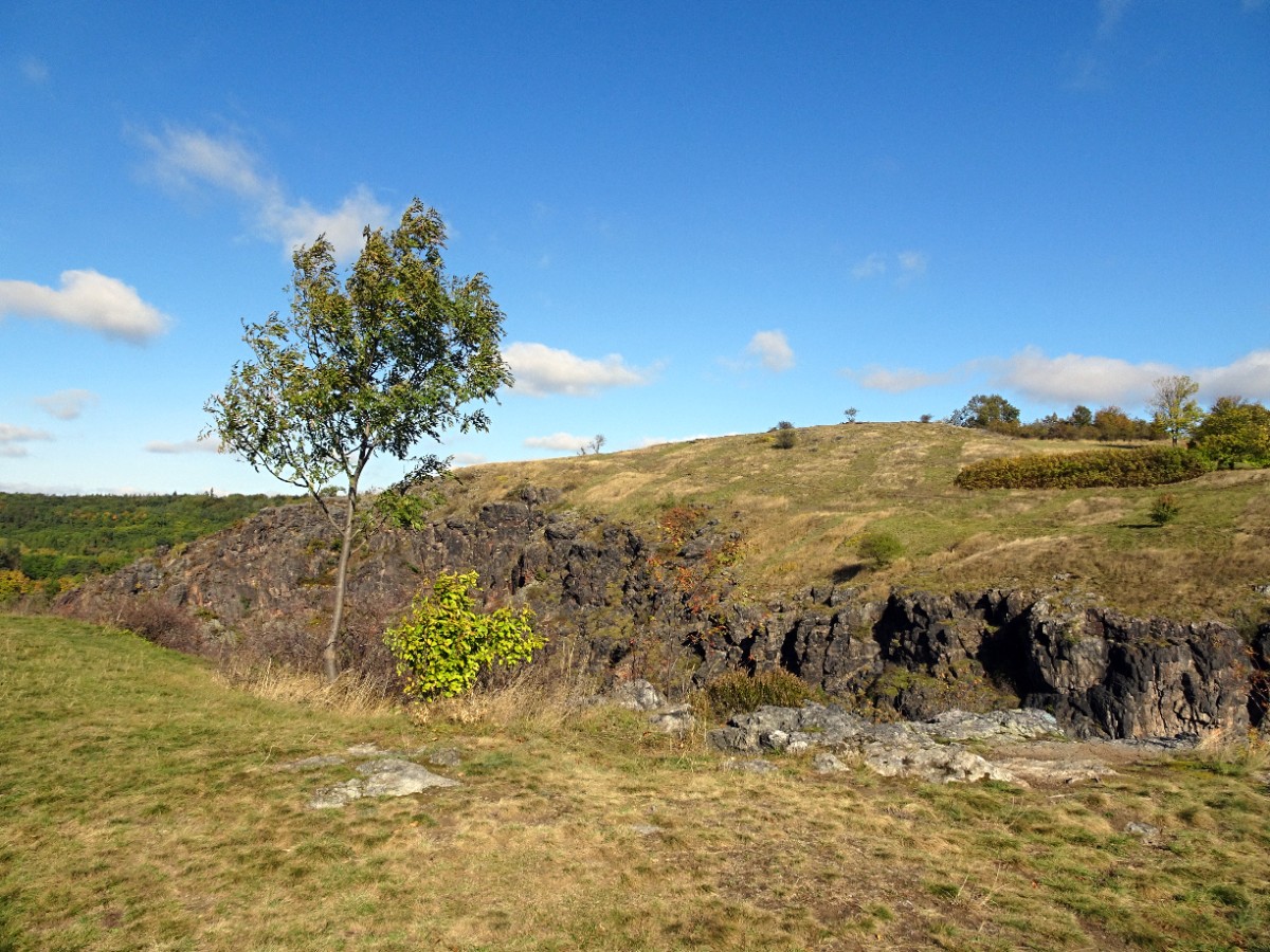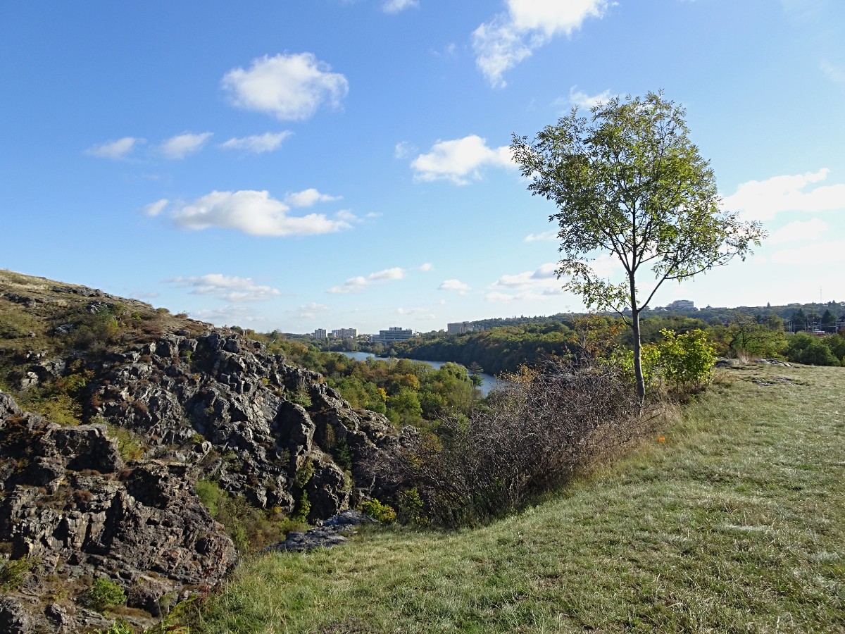Z místa srazu - hlavního nádraží v Praze, nás tramvaj č. 26 odvezla na konečnou stanici Divoká Šárka. Odtud jsme se po žluté turistické značce vydaly rovnou do Šárky, a to ne jen tak ledajaké, ale Šárky Divoké. Po chvíli jsme neznačenou a jen v trávě vyšlapanou pěšinou vyšly na nenápadnou louku, která je ovšem zakončena hlubokým sešupem do skalnatého kaňonu a věřte, že poslední krok z louky by byl osudným. Vůbec jsme netušily, že mezi skalami Šestákovou a Kozákovou je úzká štěrbina, jakoby se skála roztrhla vejpůl. V polovině října bylo nádherné slunečné počasí a dovolilo nám posadit se na louku, vychutnávat si svačinky i pohledy na protější Kozákovu skálu, přehradní nádrž Džbán a pražské paneláky za ním.
