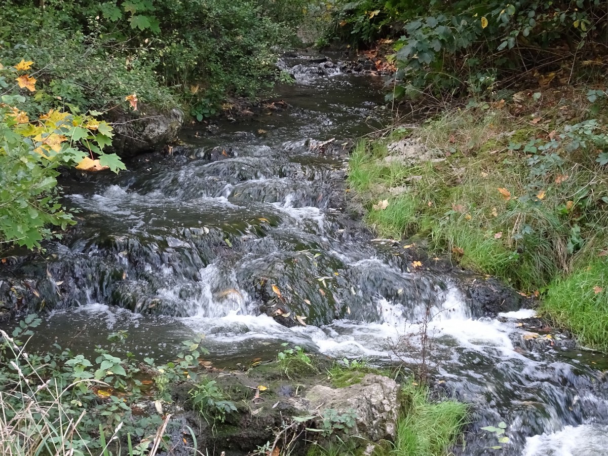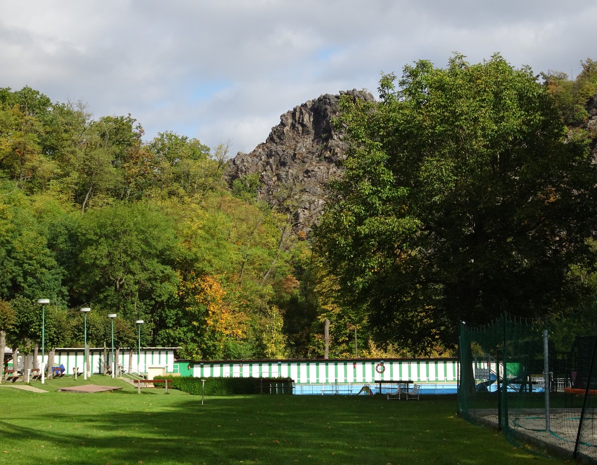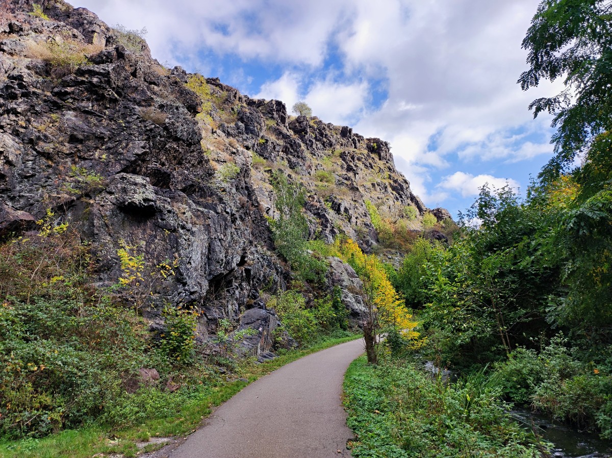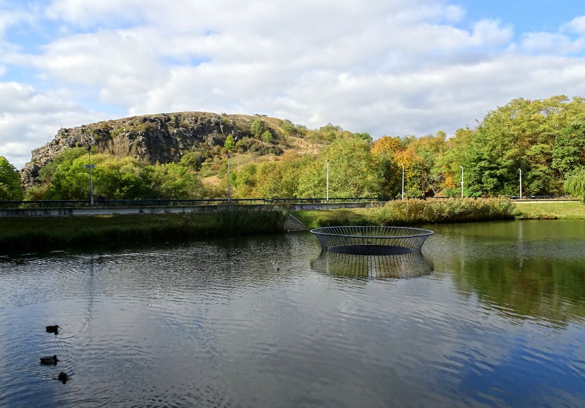Za debaty na téma "ti Pražáci se ale mají" jsme pokračovaly dál po žluté značce a u křížku v Purkrabském háji přestoupily na červenou. Sešly jsme ke koupališti Divoká Šárka, umístěném v romantickém prostředí pod skálou Dívčí skok. Koupání tu podle mého názoru bude, jak se říká, osvěžující i v parném létě. Cesta podle Šáreckého potoka nás dovedla až do kaňonu mezi oběma skalami a teď teprve bylo vidět, jak vysoko jsme seděly a neodvažovaly se pohlédnout dolů. Kochaly jsme se nádhernou podzimem se barvící přírodou a docouraly se až na hráz vodní nádrže Džbán.