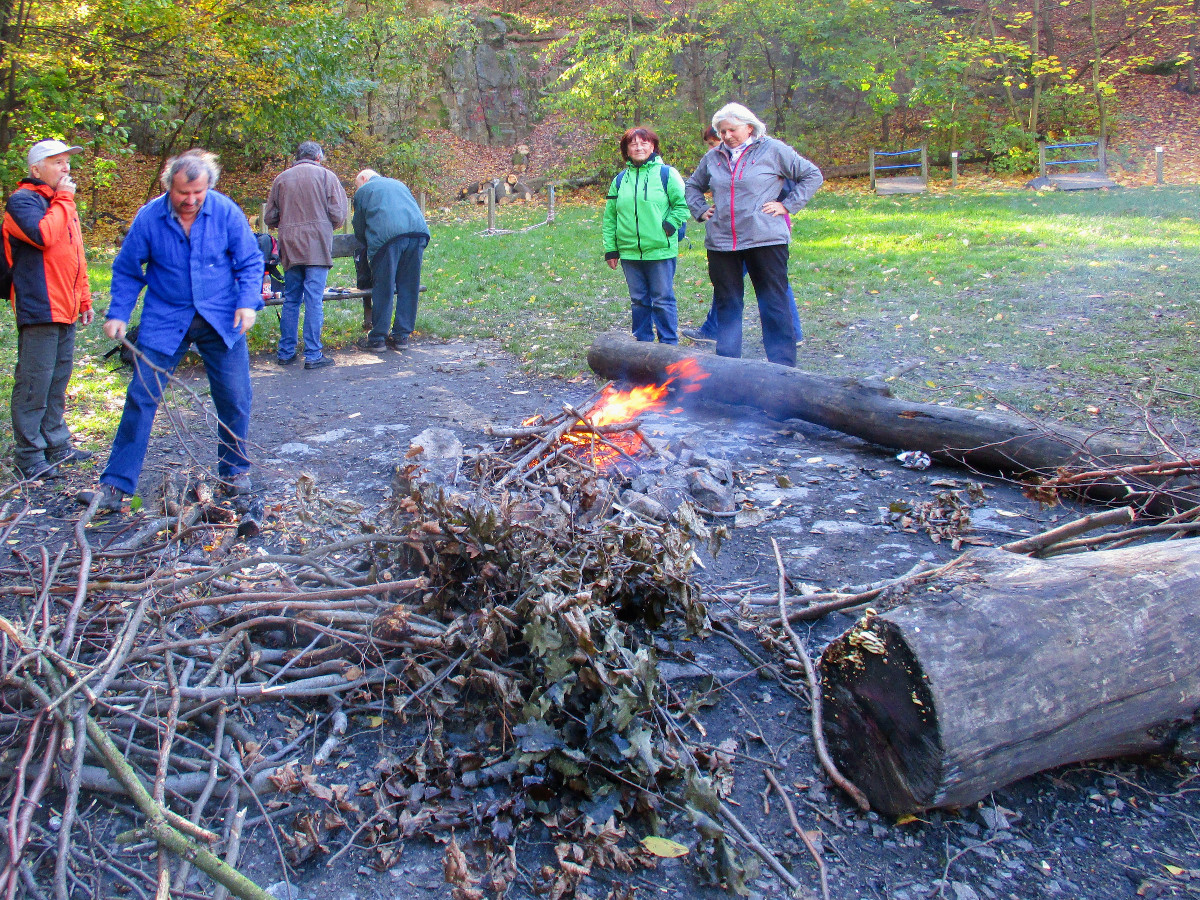 Senioři skupiny CAP Praha 8 se pravidelně scházejí každý týden a podnikají výlety v Praze i okolí. Tentokrát se nás sešlo 25 a malou procházkou Ďáblickým hájem jsme došli k lomu, kde nám muži připravili oheň. Piknikový prostřený stůl se prohýbal samými dobrotami, které donesly účastnice dnešního setkání u ohně. Nechyběl ani přípitek, grog, svařené víno a opečené buřty chutnaly výborně.