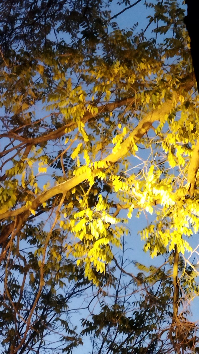 Nejkrásnější jsou lampy svítící do korun zlátnoucích stromů. Stromy proměněné v pochodně zlaté krásy, světlem doprovázejí padající listy jako symboly uplývajícího času. Zbarvené listy nepřemýšlejí o tom, jaká je hodina. Padají tiše a poslušně. Nastal jejich čas.