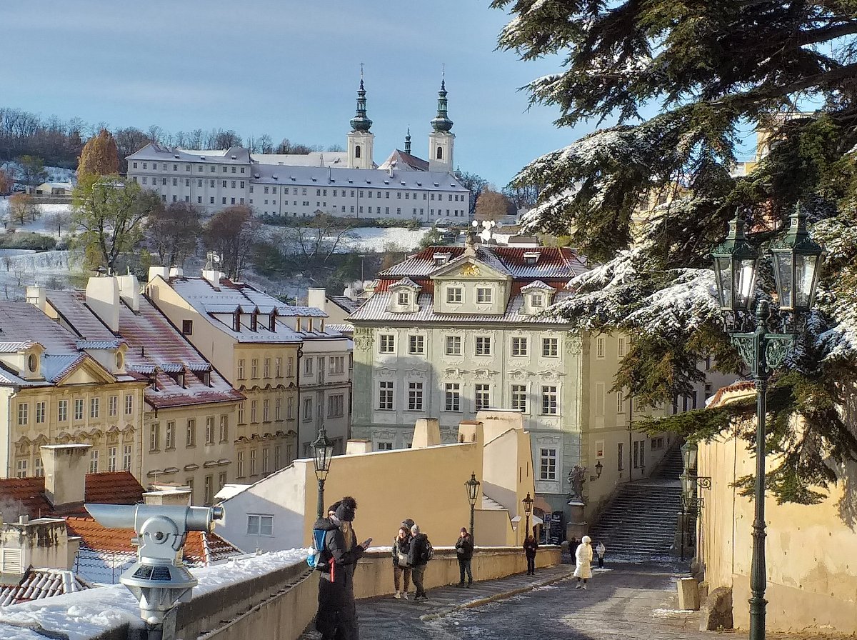 Spolu s dalšími poutníky shlížím na Stověžatou ve slušivém bílém hávu, a na mysli mi vytanou verše Jaroslava Vrchlického: