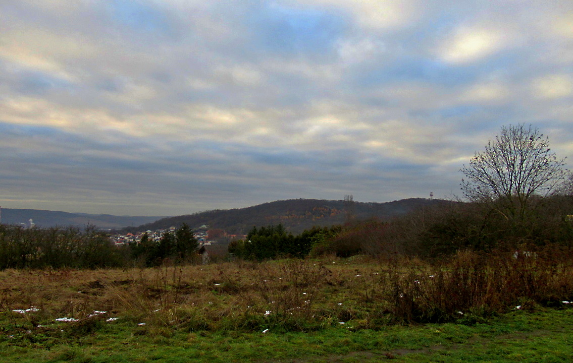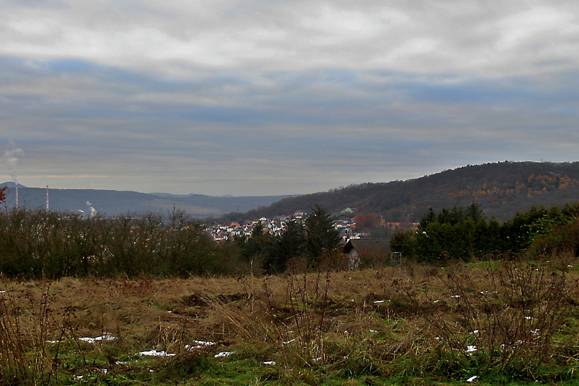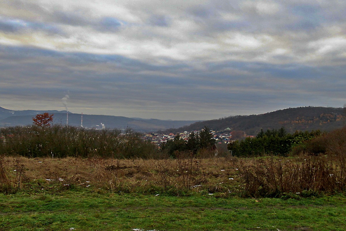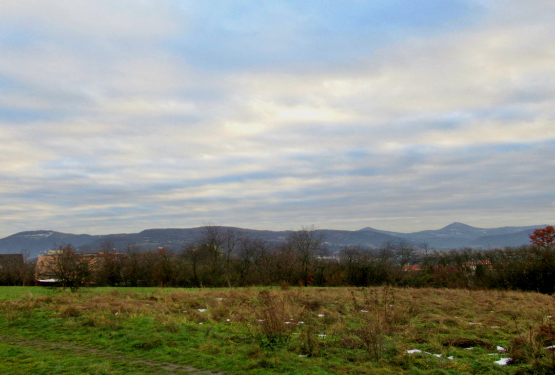 Ještě v pondělí bylo všude kolem nás bílo, stačil noční déšť a kdeže ty letošní sněhy jsou. Od soboty jsem nevystrčila nos z domu, o cukroví se mi pomalu už i zdá. A tak jsem se rozhodla, že cukroví nemá nožičky, tak mi nikam neuteče. Venku bylo docela hezky, naložili jsme pejska, vše potřebné pro vosí úly a hurá za dcerou do práce. Vzala jsem si s sebou pro jistotu foťák, že zkusím něco vyfotit. To už mi taky chybělo, a protože počasí bylo pro focení jako stvořené, fotila jsem vše, co se dalo. Měla jsem vyhlédnuté jedno místo, odkud jsou dobře vidět kopce. Nejdřív jsem fotila kolem dceřina pracoviště a pak jsem navrhla, že se zastavíme tam, odkud jsou dobře vidět ty kopce. Sice se už počasí trochu změnilo, ale fotit se dalo. Můj hodný a poslušný manžel mi zastavil hned naproti přes silnici, běhala jsem po louce a fotila o sto šest.