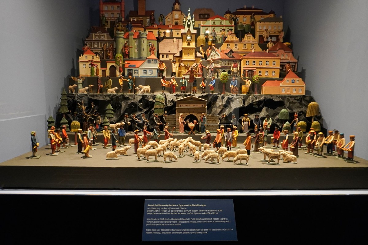 Příbramský betlém řezbářů otce a syna Hoškových z r. 2019.