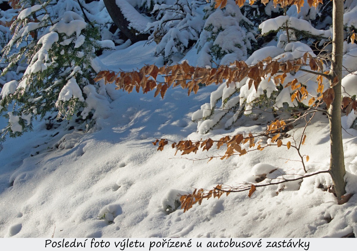 Do krásného zimního dne jsem se probudila desátého ledna. Vše bylo pod tenkou sněhovou přikrývkou, teplota osm stupňů pod nulou a jasná obloha. Rozhodla jsem se pro fotovýlet na Soláň. Byla to dvouhodinová procházka pod vrcholem Soláň s nejedním překvapením. Sněhu nebylo o nic více jak v údolí, tálo a nepotkala jsem žádného živáčka /výjimkou byla kočka/. Posledním překvapením byl příjemný rozhovor s mladým fotografem na autobusové zastávce.