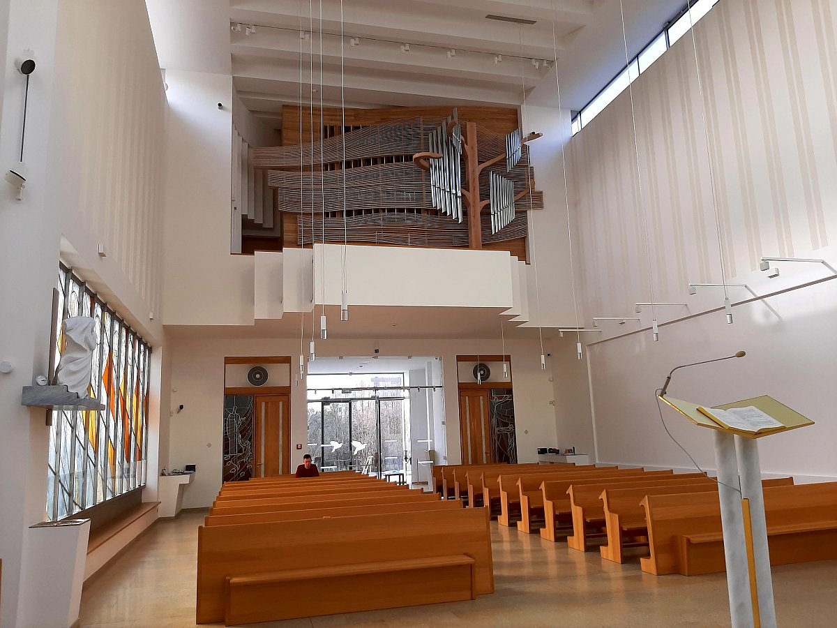 Vidím, že interiér kostela je dokončován postupně. Když jsem zde byla poprvé v dubnu 2021, svícen ještě neměl podstavec, na skleněném kříži nevisela socha Krista, v kapli nelevitoval svatostánek, dveře do zpovědních místností neměly vitráže a na kůru nestály varhany. Proč byly varhany instalovány teprve vloni?